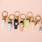 We are tumbler obsessed! Accessorize your essentials with this brand new tiny tumbler keychain. Lightweight and adorable, perfect to add to any wristlet/bag you have!