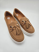 Say hello to ERINA, our classic and modern slip-on loafer featuring shiny hardware accents with flirty tassels. The comfort and versatility of the padded insole can easily be removed for added convenience and customization.