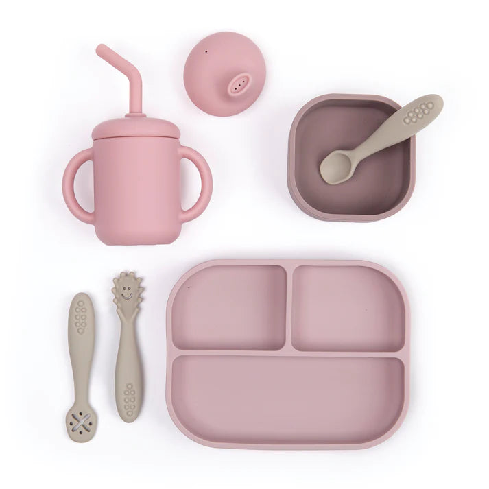 One set includes everything you need: you’ll get a cup, 2 lids, 3 utensils, 1 suction plate, and 1 starter bowl.