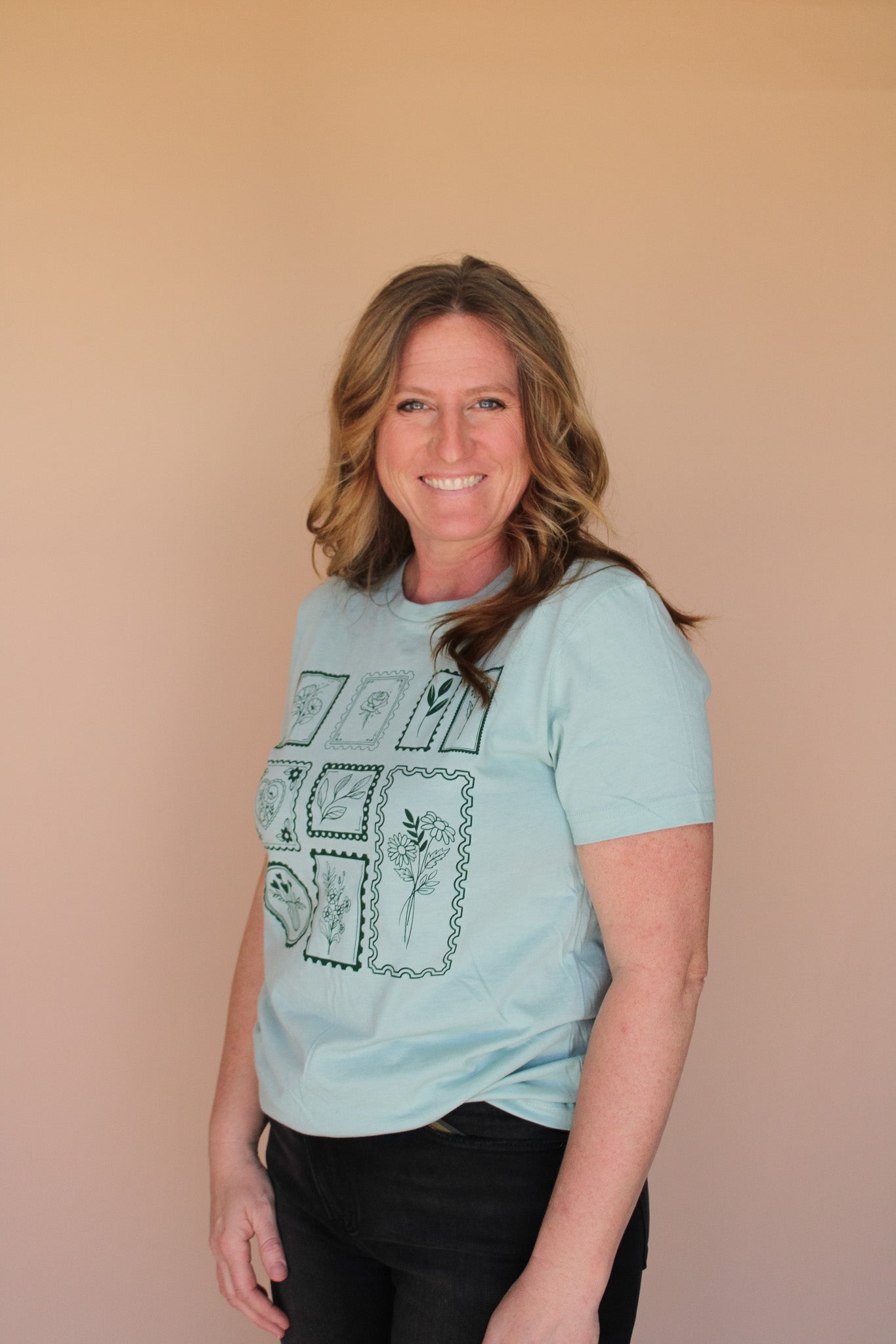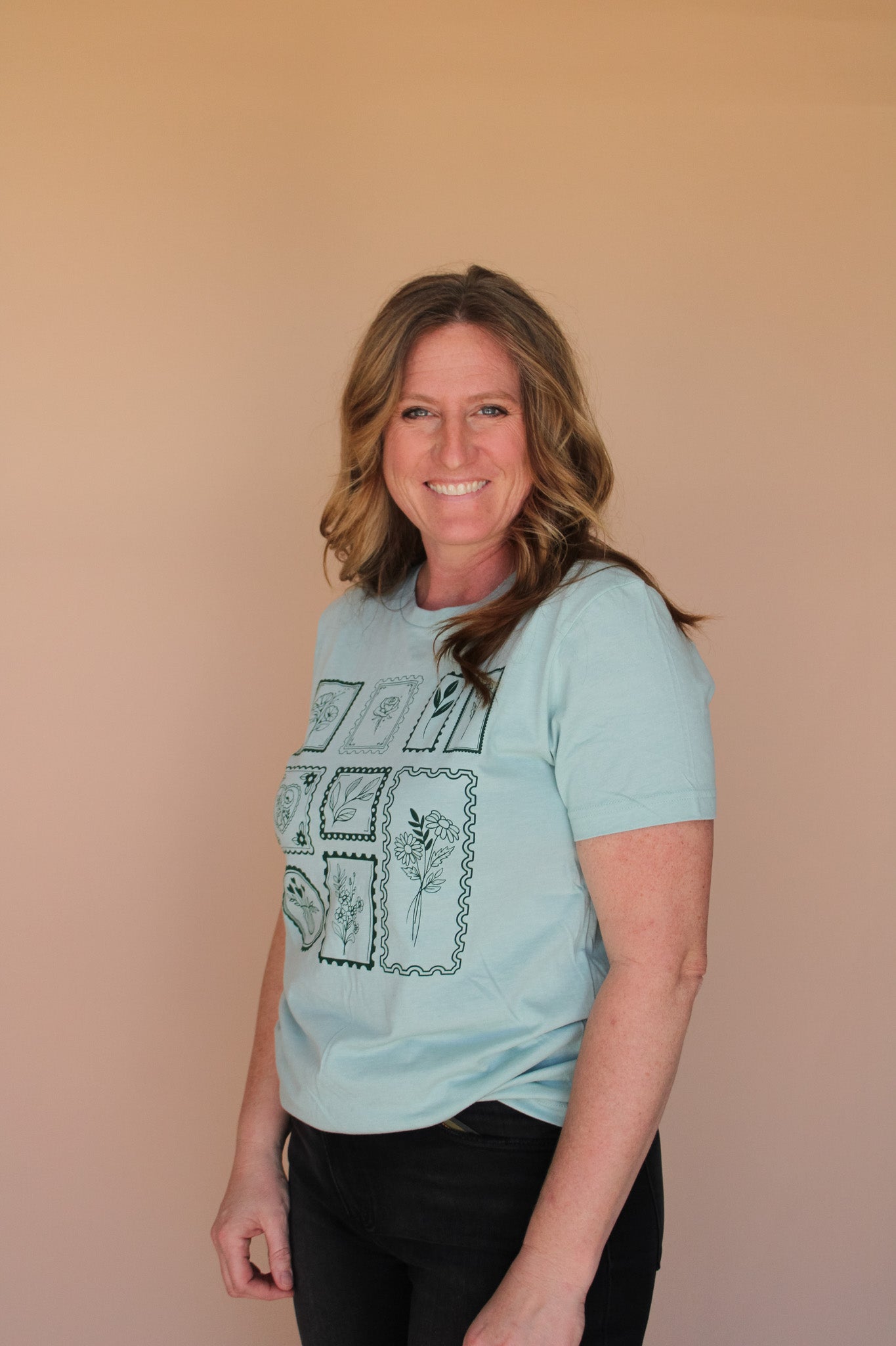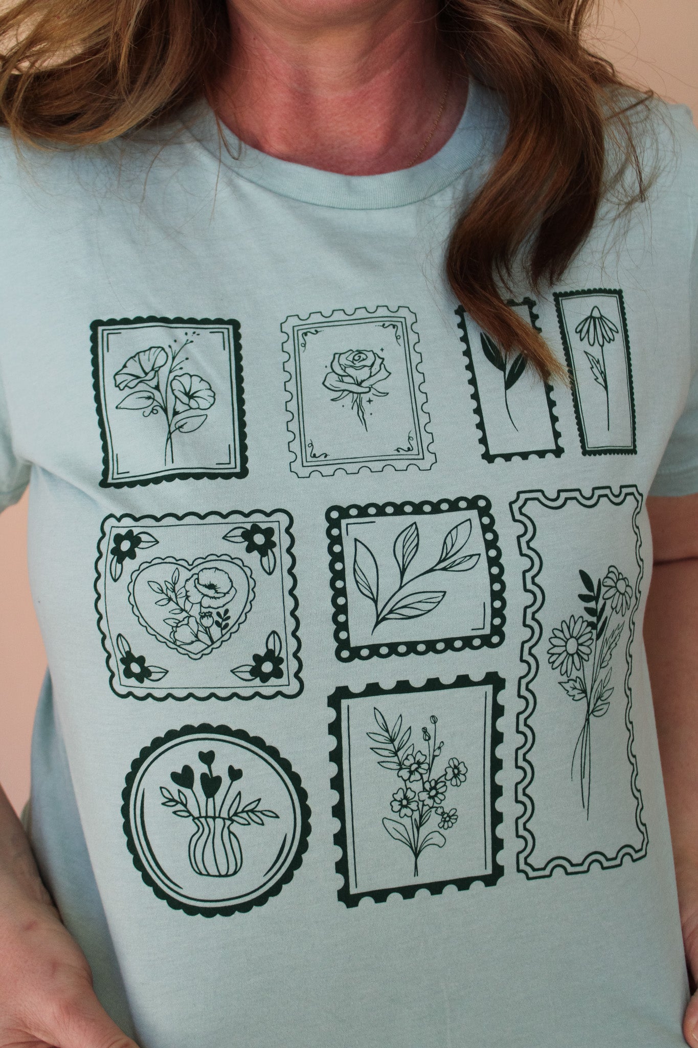 PETALS & POSTAGE REG/CURVY GRAPHIC TEE