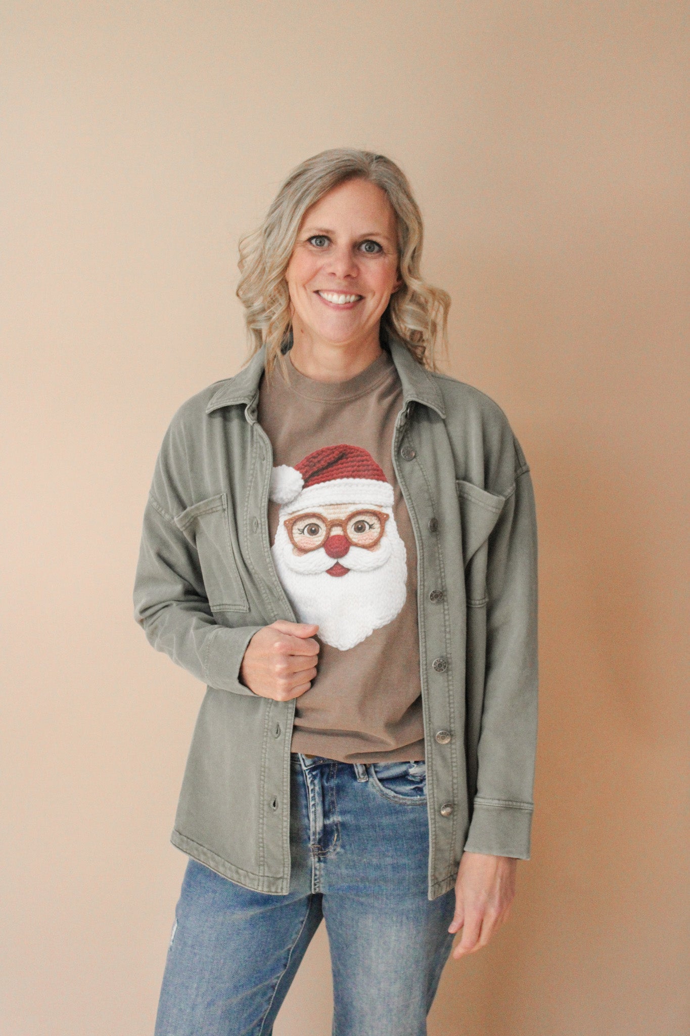 FAUX CROCHET SANTA REG/CURVY GRAPHIC TEE