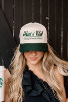 Join the MOM'S CLUB TRUCKER CLUB and show off your love for caffeine and dreams with our vintage snapback trucker hat. Featuring green embroidery, this hat is perfect for all the coffee-loving moms out there.