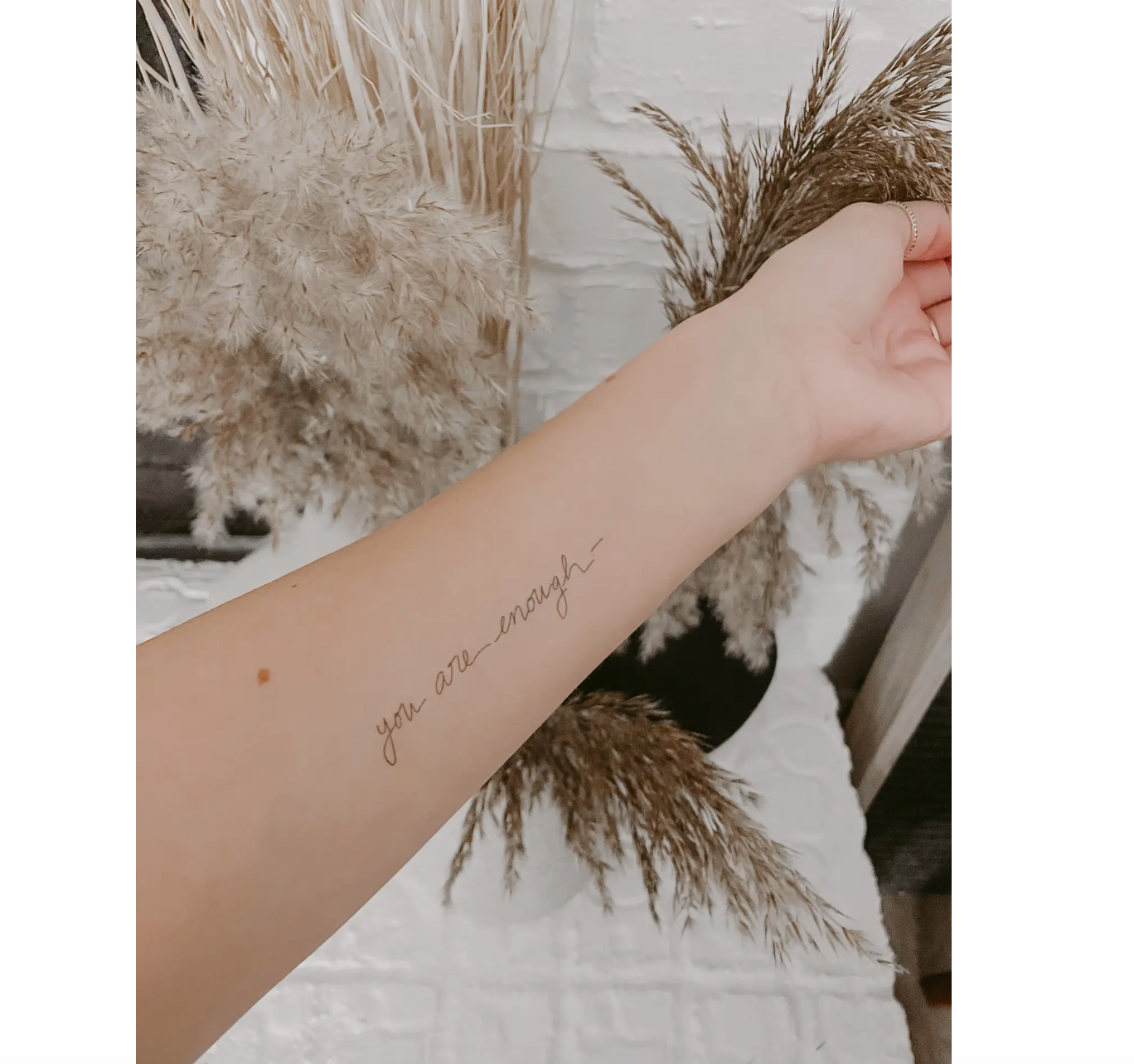Words are powerful and we offer a beautiful way to wear a meaningful word without the commitment of a permanent tattoo. These temporary tattoos are hand-lettered by owner, Abi! We've cultivated a community of women who wear Words for a Season to celebrate their highs and find strength for their lows.  Our temporary tattoos are waterproof and typically last 1-3 days (some have lasted longer). *Best if placed on a smooth, hair-free location.