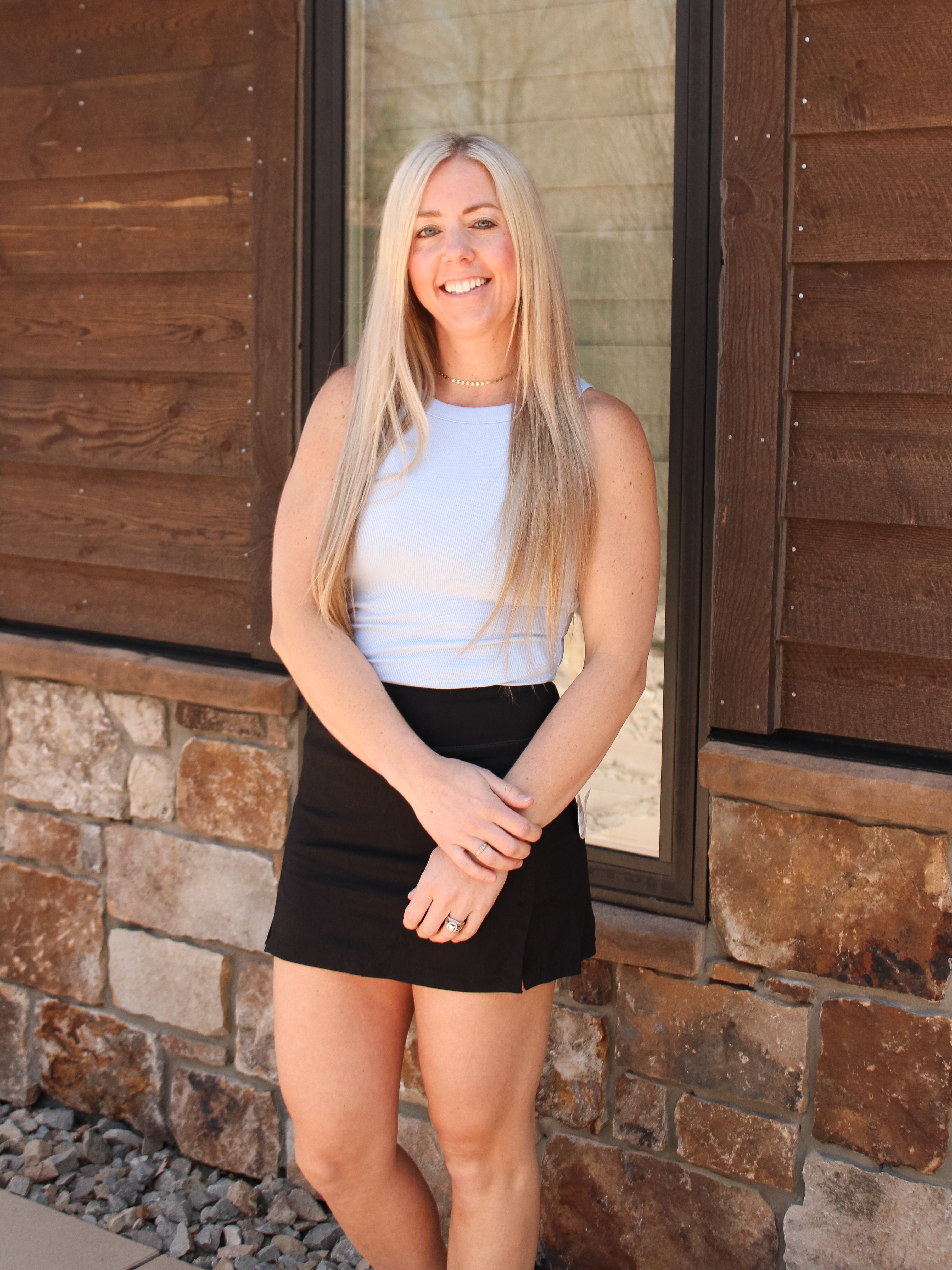 Get your game on in our ESSENTIAL ACTIVE TENNIS SKORT. Made from a durable blend of 75% nylon and 25% spandex, this black tennis skort offers comfort and flexibility on the court. Ace your style game with our Essential Active Tennis Skort!