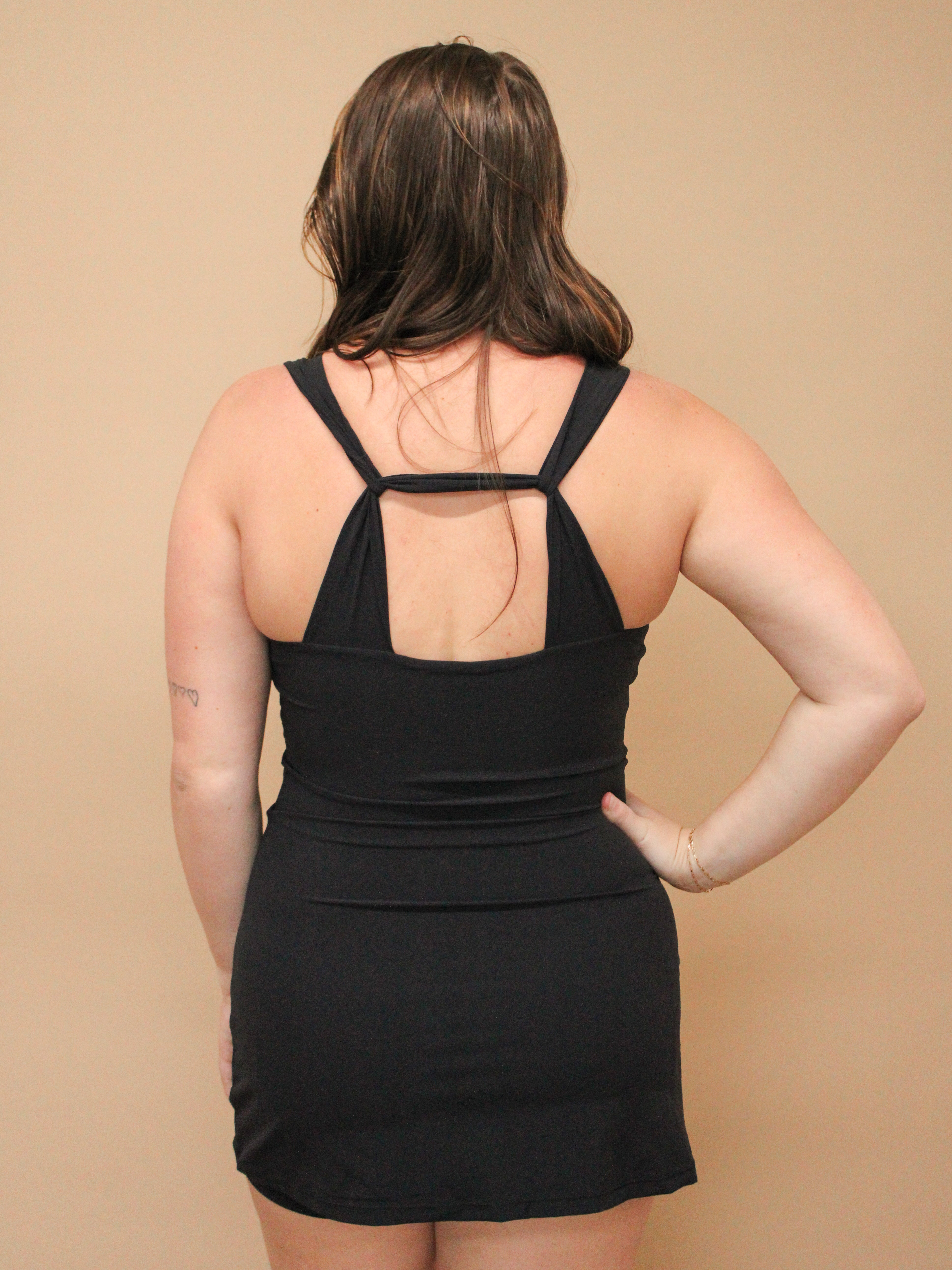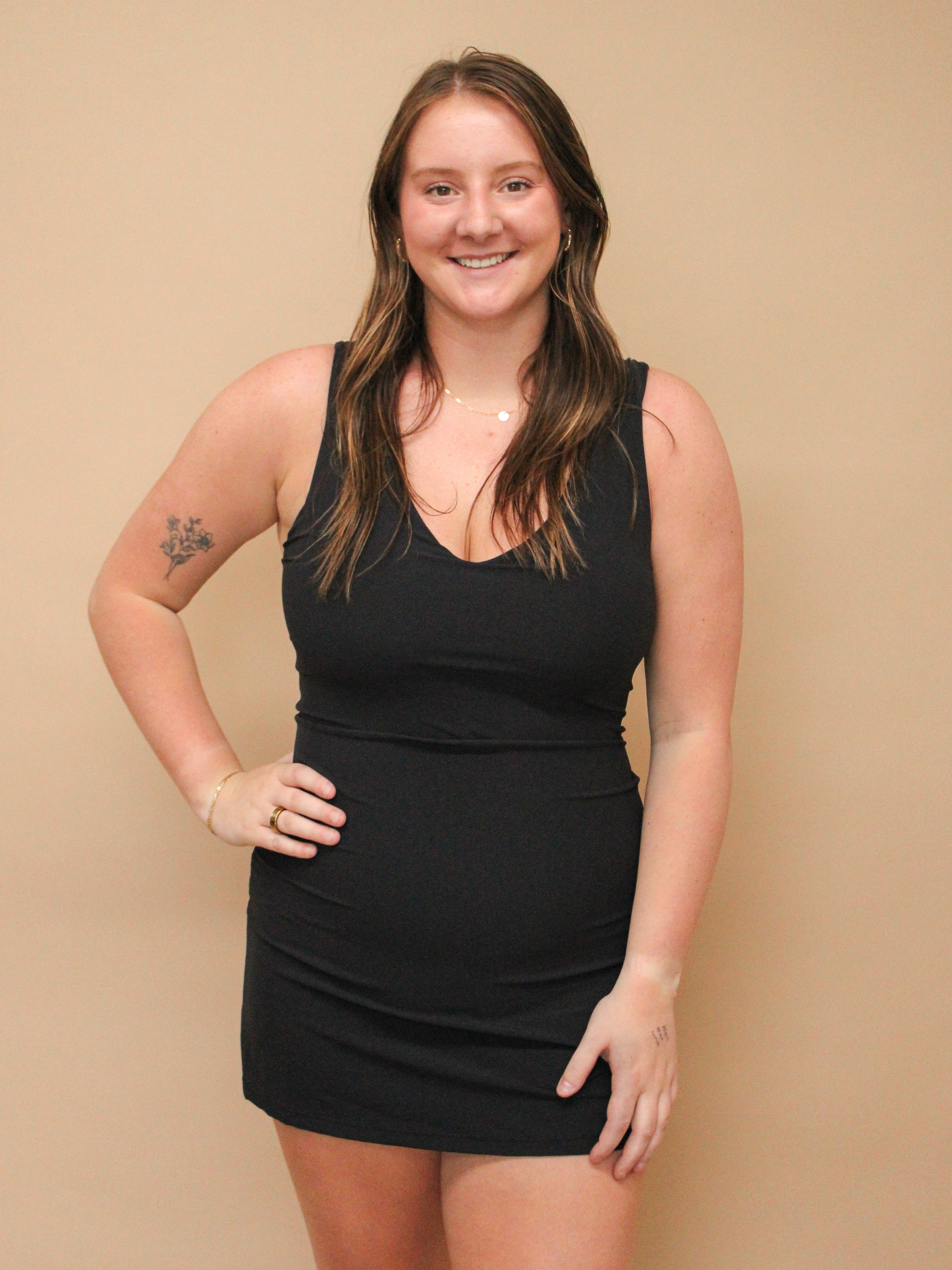 Experience the perfect blend of style and functionality with the CATLYN BLACK TENNIS SKORT DRESS BY IVY & CO! This playful A-line dress features a supportive built-in bra and shorts that keep you covered during your most active moments. Switch up your look in seconds with the thick, adjustable shoulder straps—wear them as a classic tank or trendy halter style. Whether you're serving aces on the court or brunching with friends, this versatile piece has you covered!