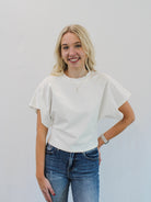 Add a touch of playful charm to your wardrobe with the RENLEE wide sleeve top by Ivy & Co! Crafted from 100% cotton, this slightly cropped top features a unique wide sleeve design, perfect for any casual or dressed-up look. Stay cool and stylish in white.