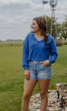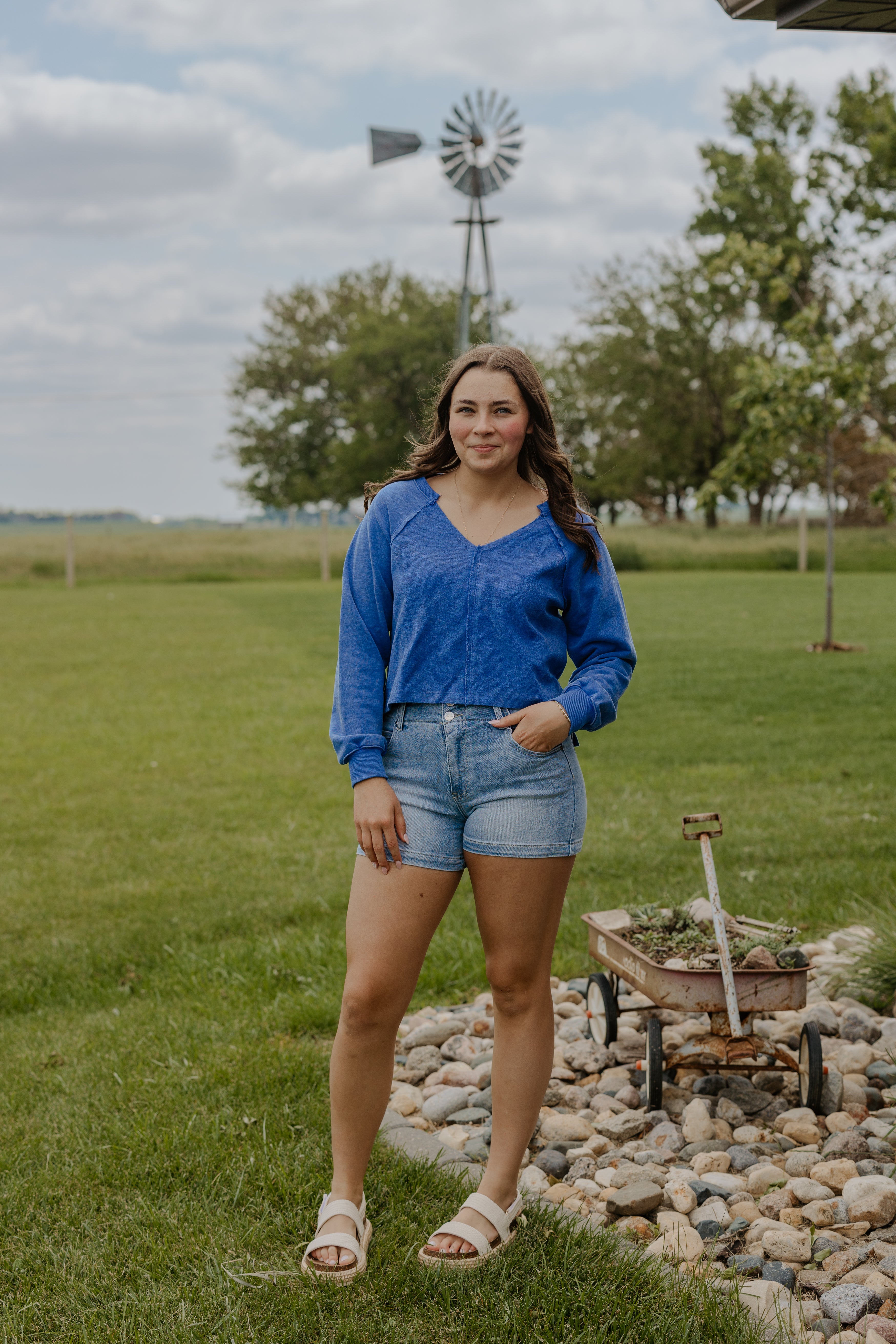 Dive into cozy-chic vibes with this mineral-washed masterpiece! The RINNA sweatshirt rocks an uneven V-neck that adds just the right amount of sass, while those banded cuffs keep things snug. With its playful high-low hem and slightly cropped length, this top is ready to dance through your day—detailed seams included for that extra pop of personality!