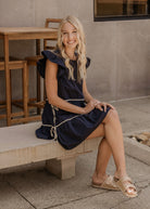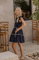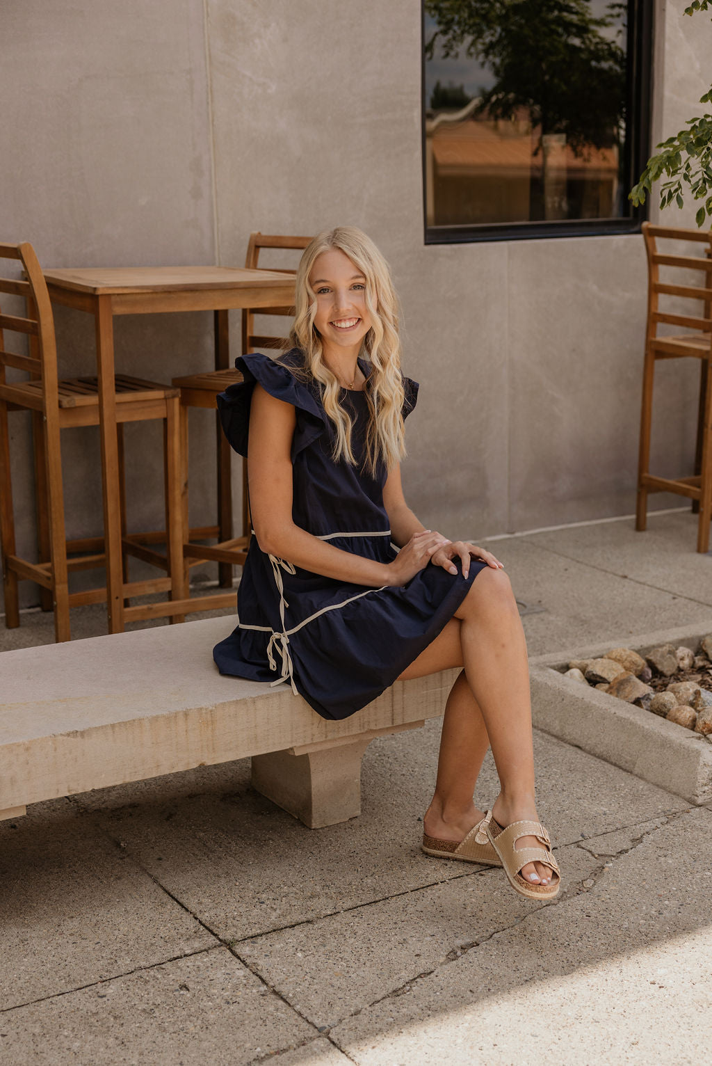 WRENLY NAVY DRESS WITH CREAM BOW DETAILING BY IVY & CO