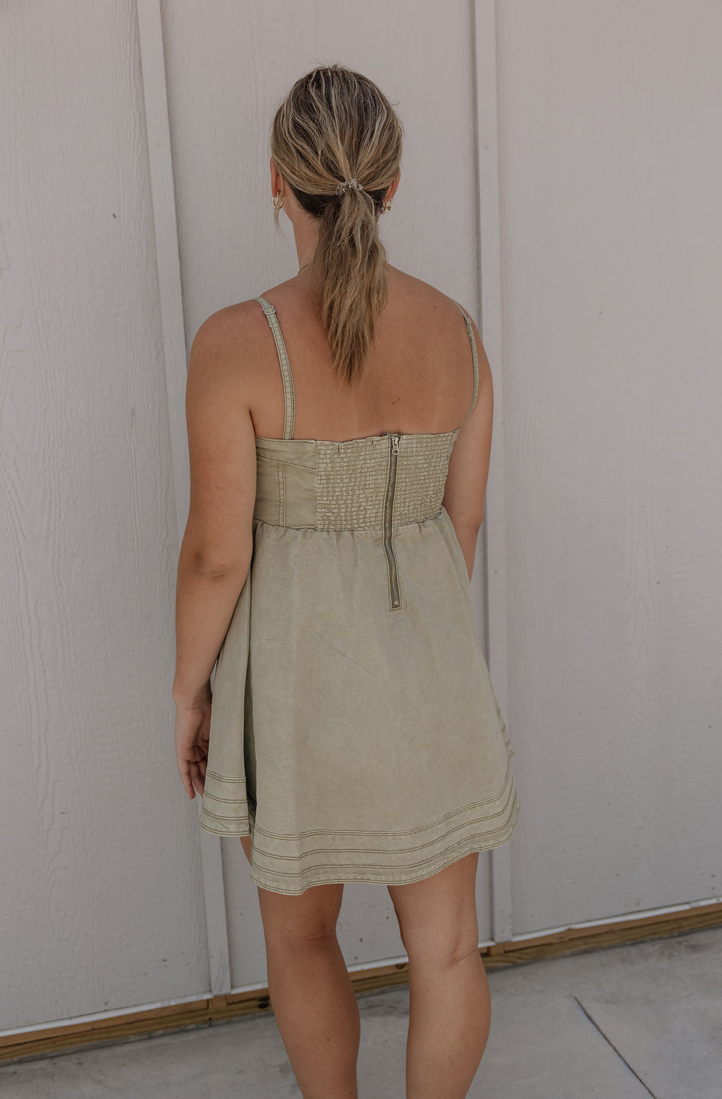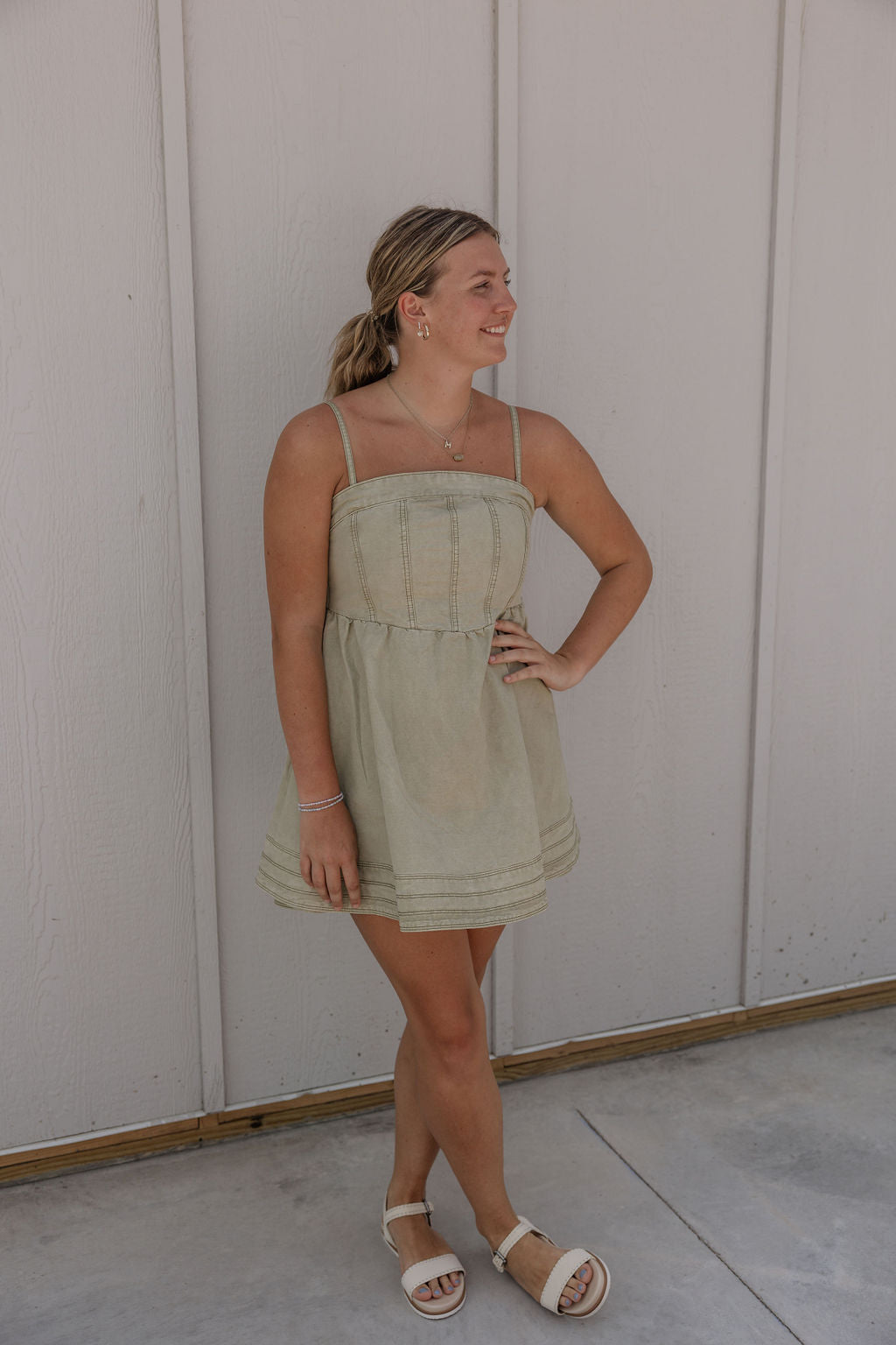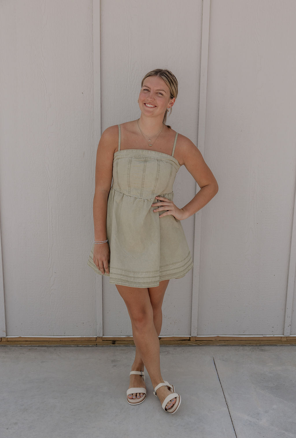 SKYLAR WASHED OLIVE DENIM SHORT DRESS BY IVY & CO