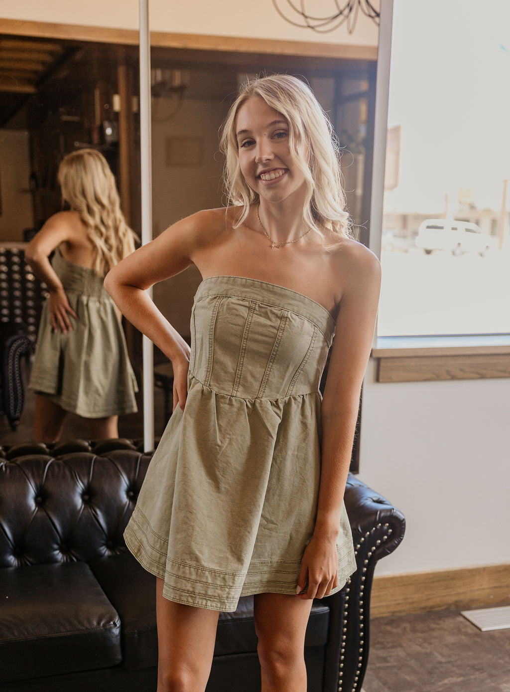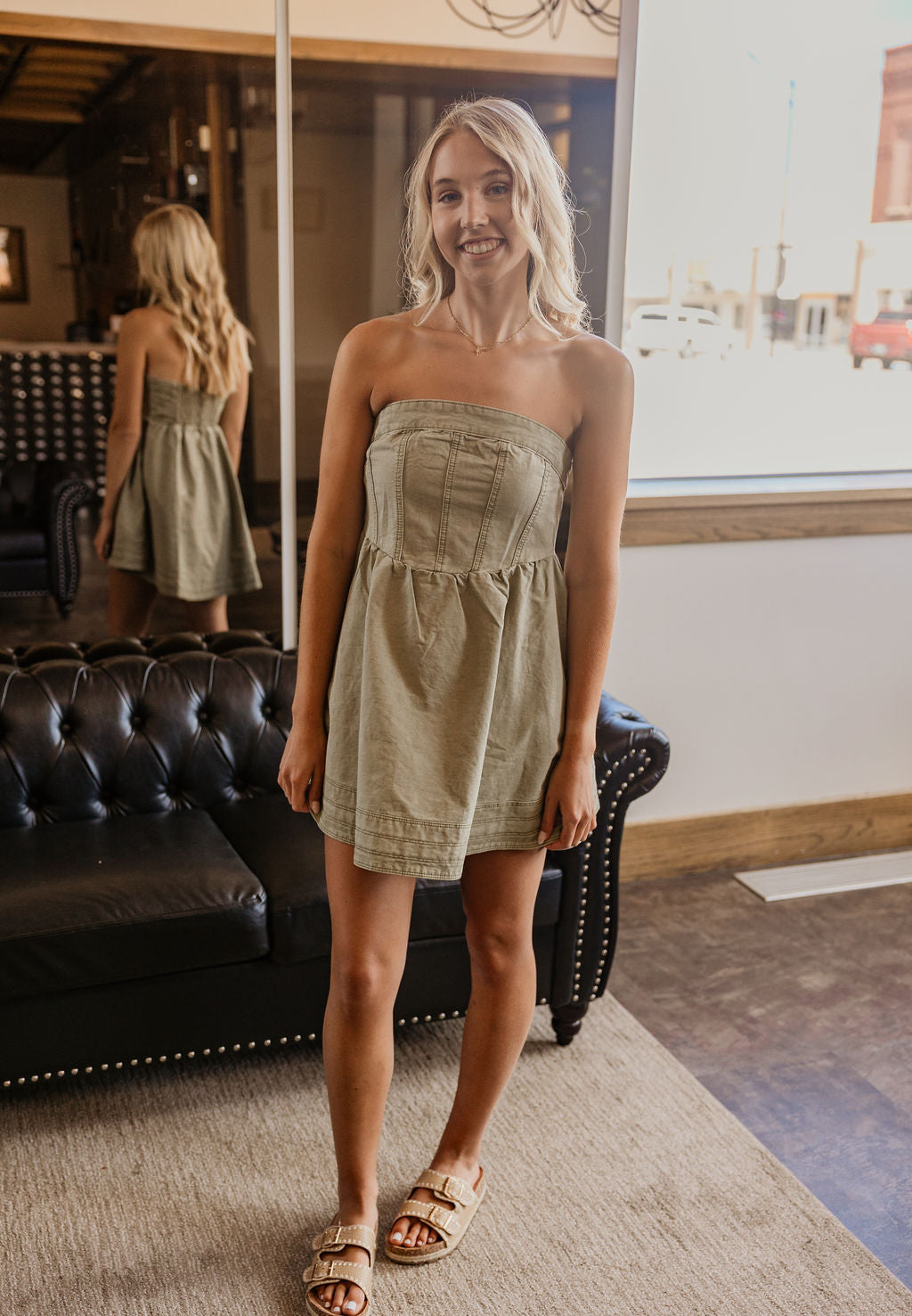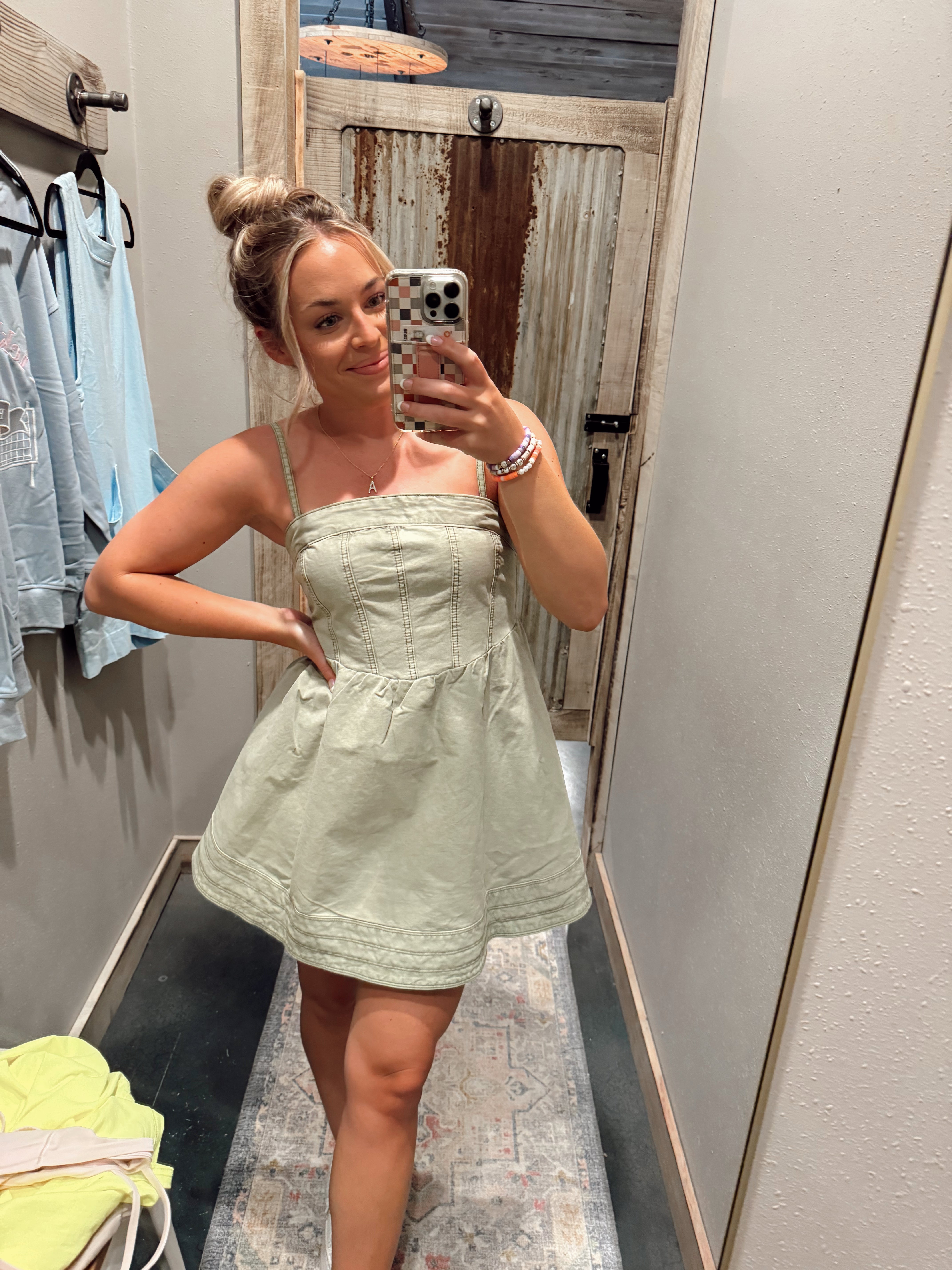 SKYLAR WASHED OLIVE DENIM SHORT DRESS BY IVY & CO