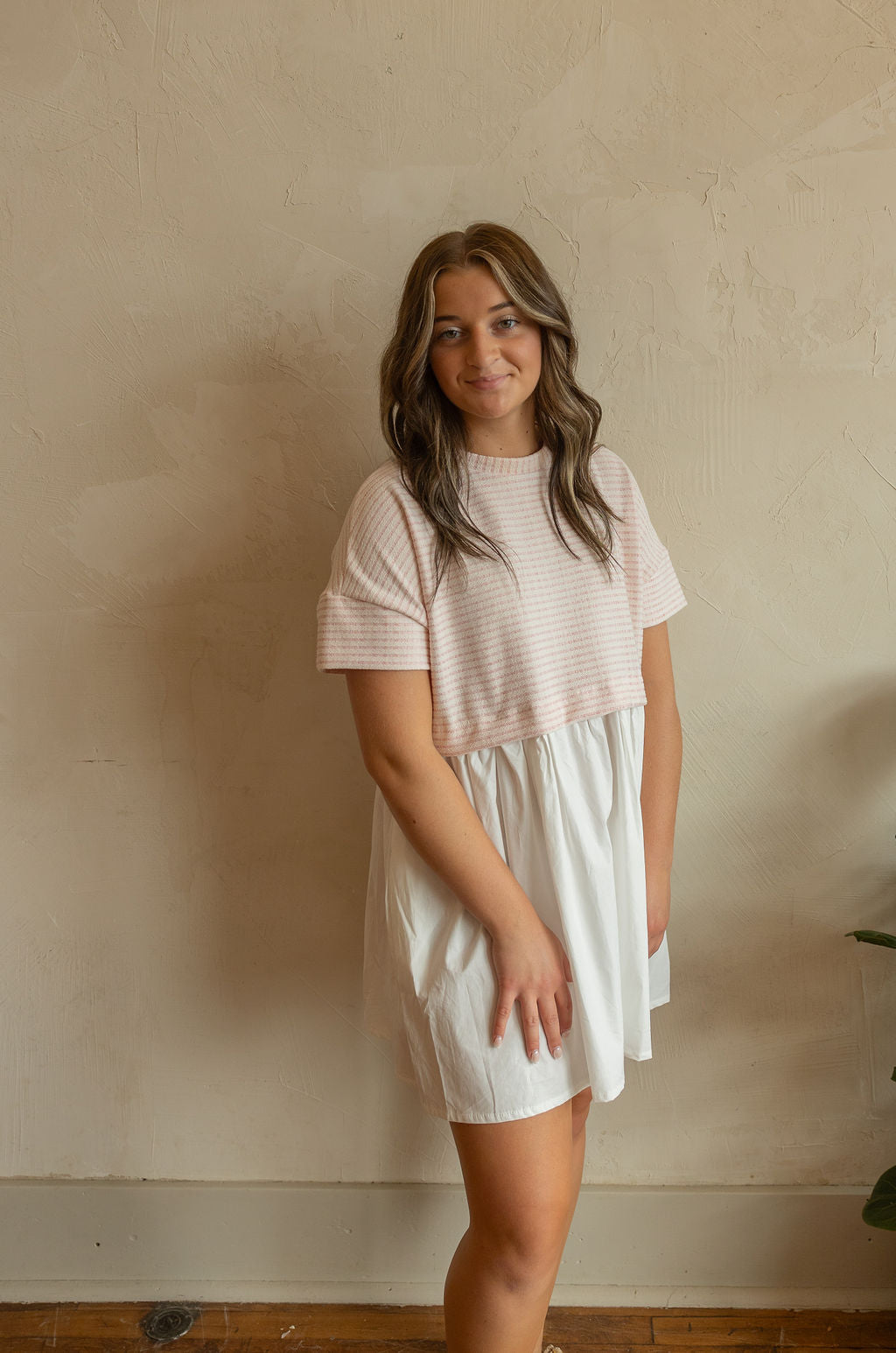 MEGAN LIGHT PINK MULTI TEXTURED SHORT DRESS BY IVY & CO