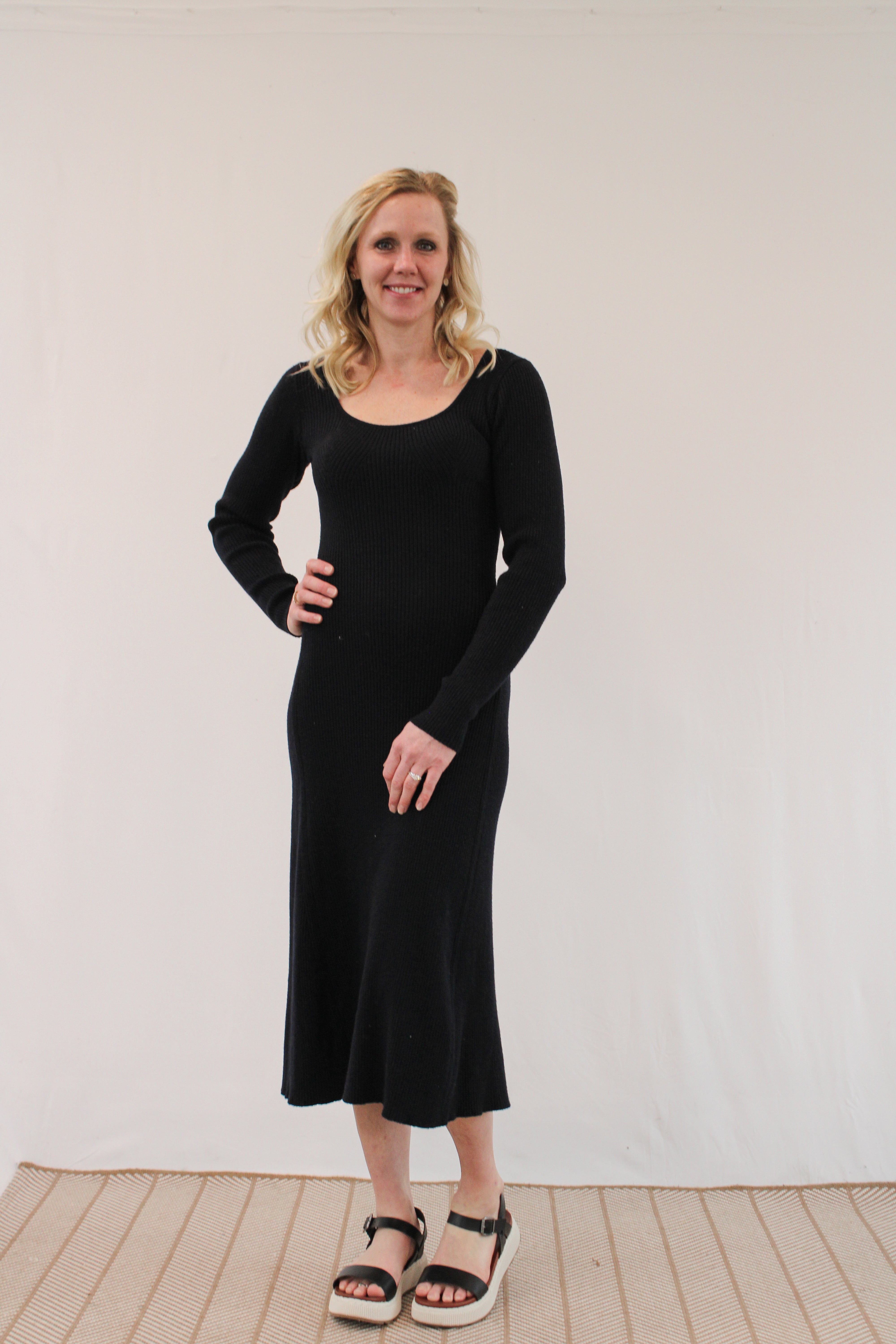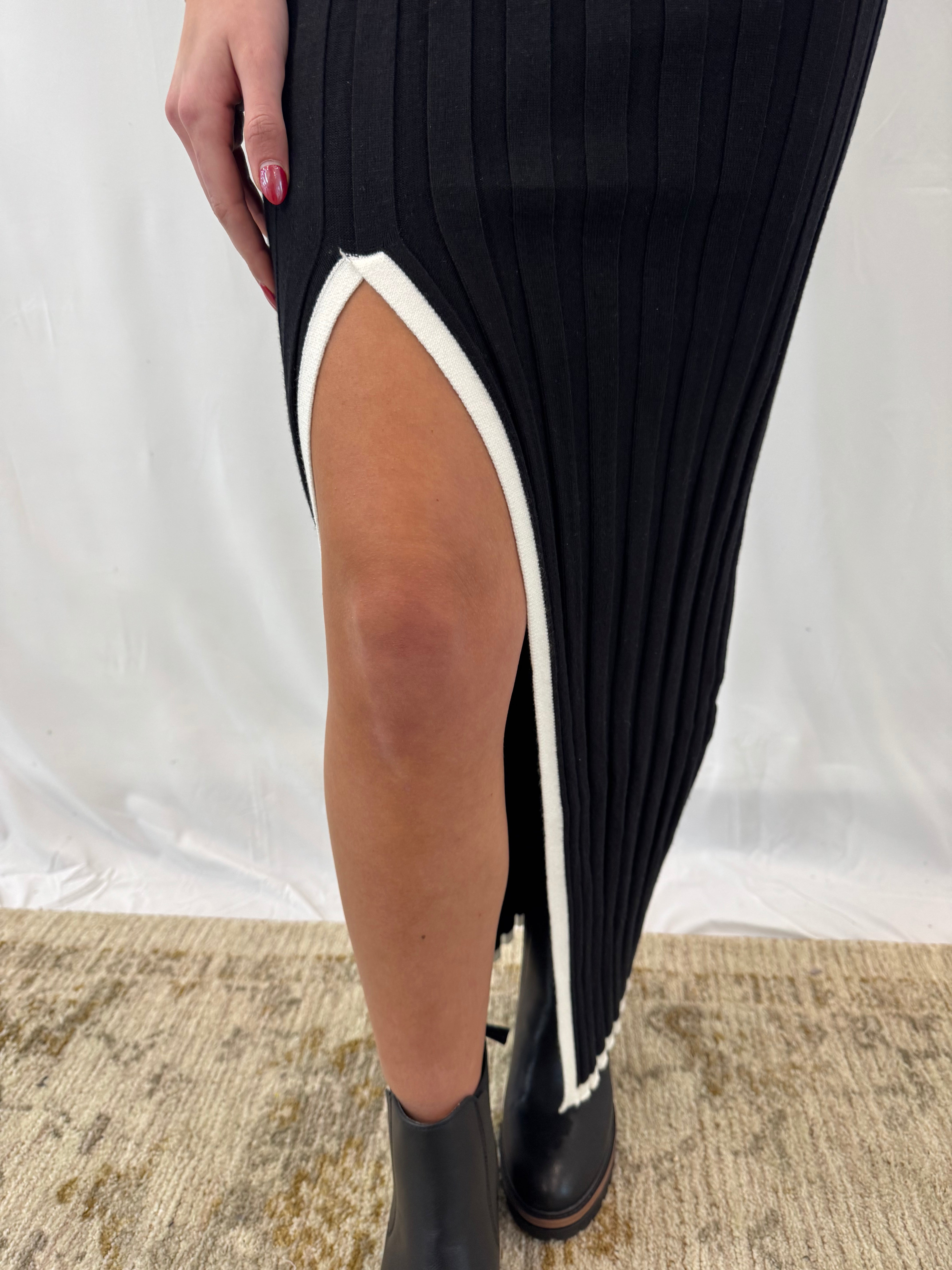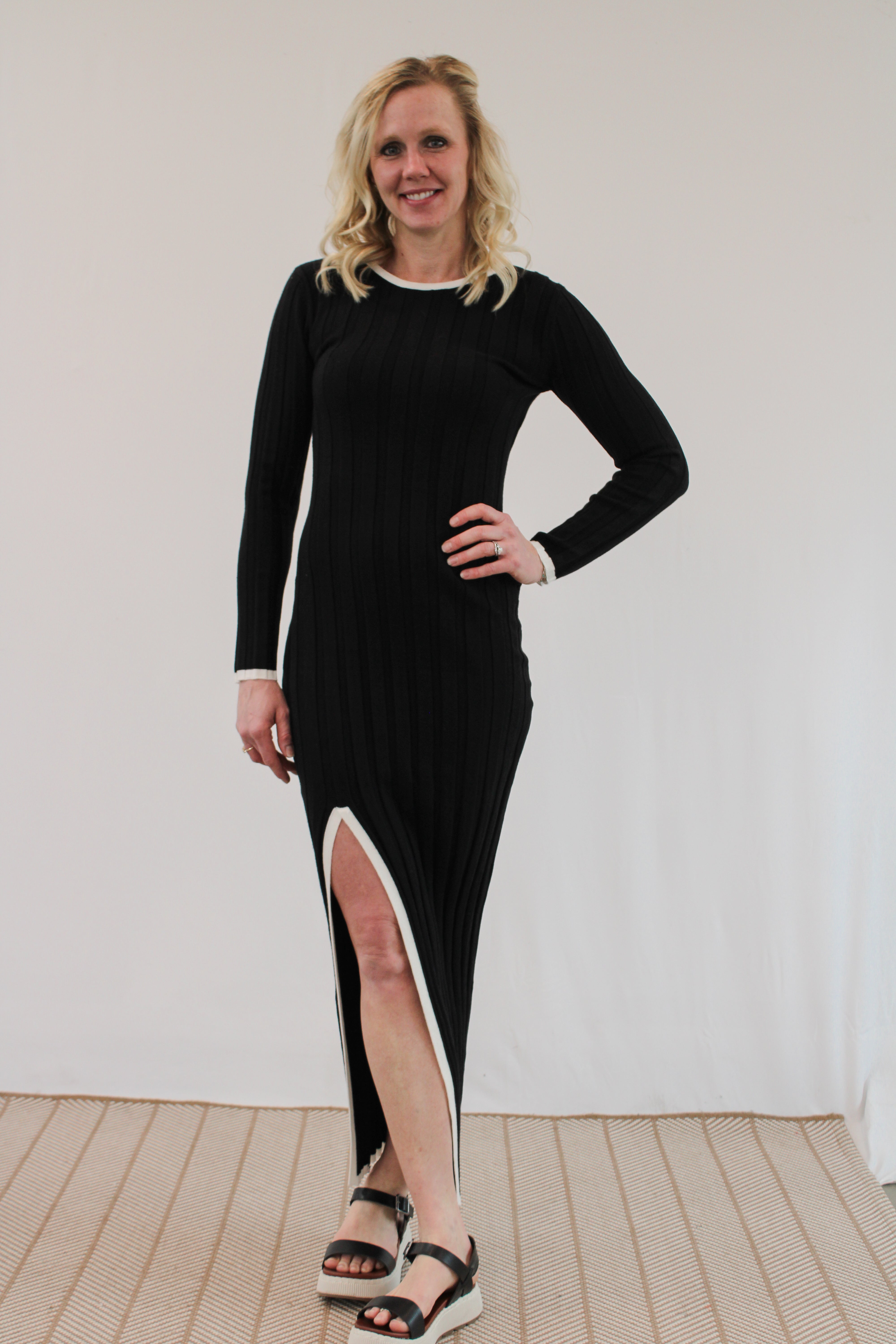 KATIE SQUARE NECK KNIT FITTED SLIT DRESS 2 COLOR OPTIONS BY IVY & CO