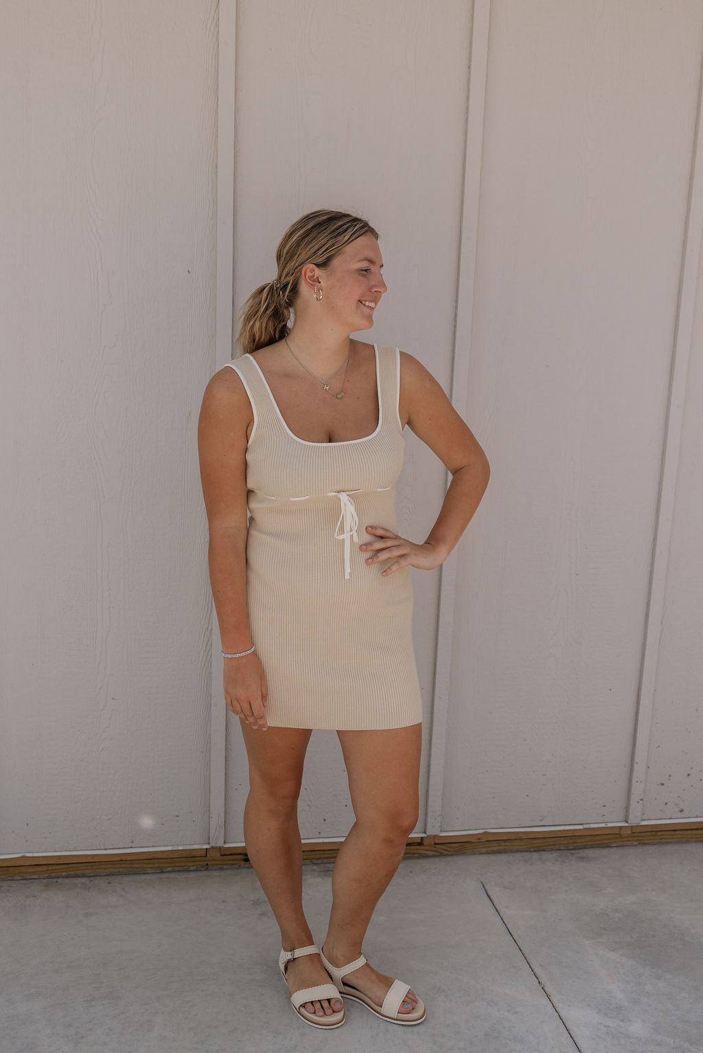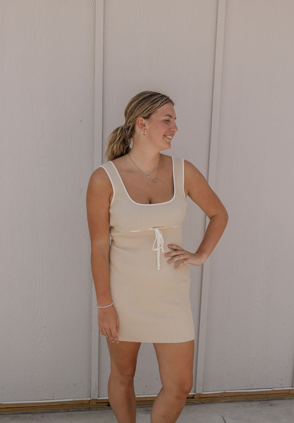 STARLA STITCHED BEIGE SWEATER DRESS BY IVY & CO