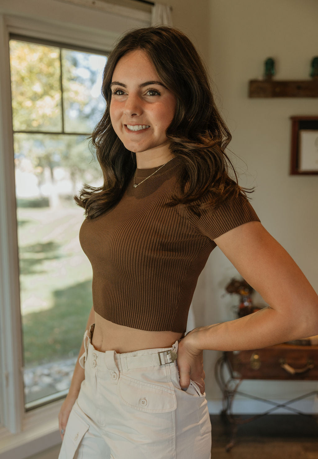 Featuring a round neckline, short sleeves, and a raw edge, this top is the perfect blend of comfort and style. From hanging out with friends to running errands, this top has got you covered!
