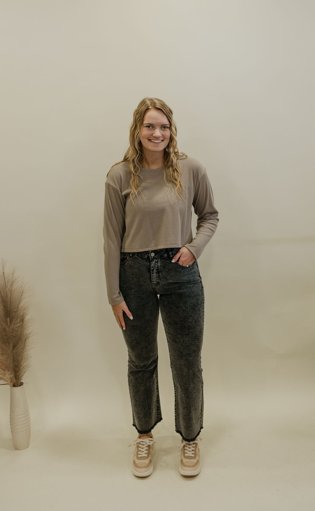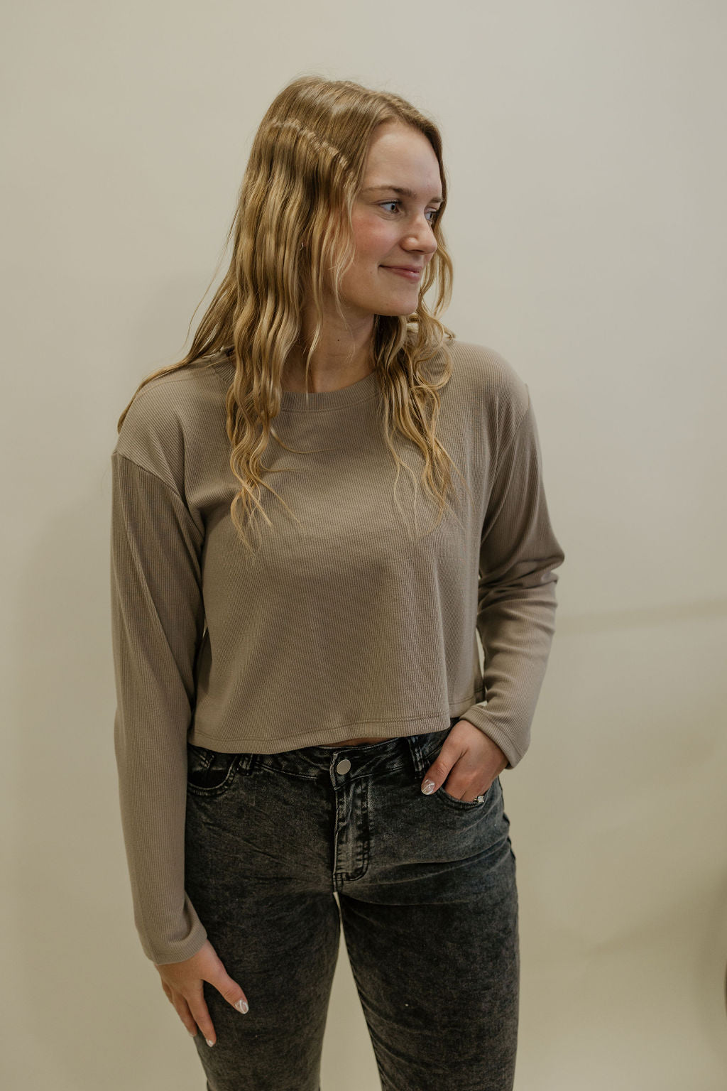 JAIDEN CROPPED RIBBED LONG SLEEVE TOP BY IVY & CO