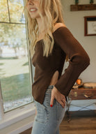 Introducing the must-have Elevated Basics off the shoulder knit! With a sexy side slit and perfect for pairing with a mini skirt and tall boots, this knit will take you from pumpkin patch to date night. Elevate your style game with this one-of-a-kind piece.