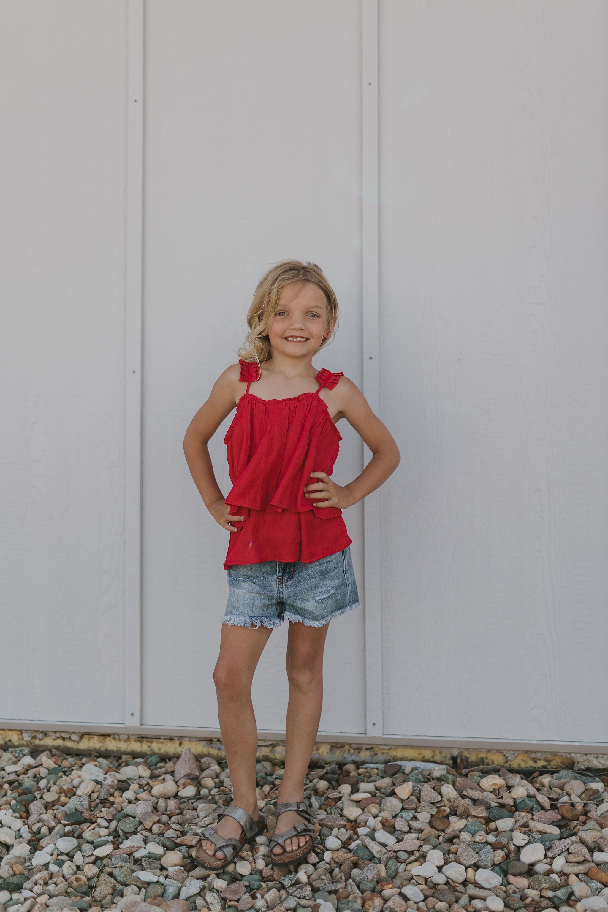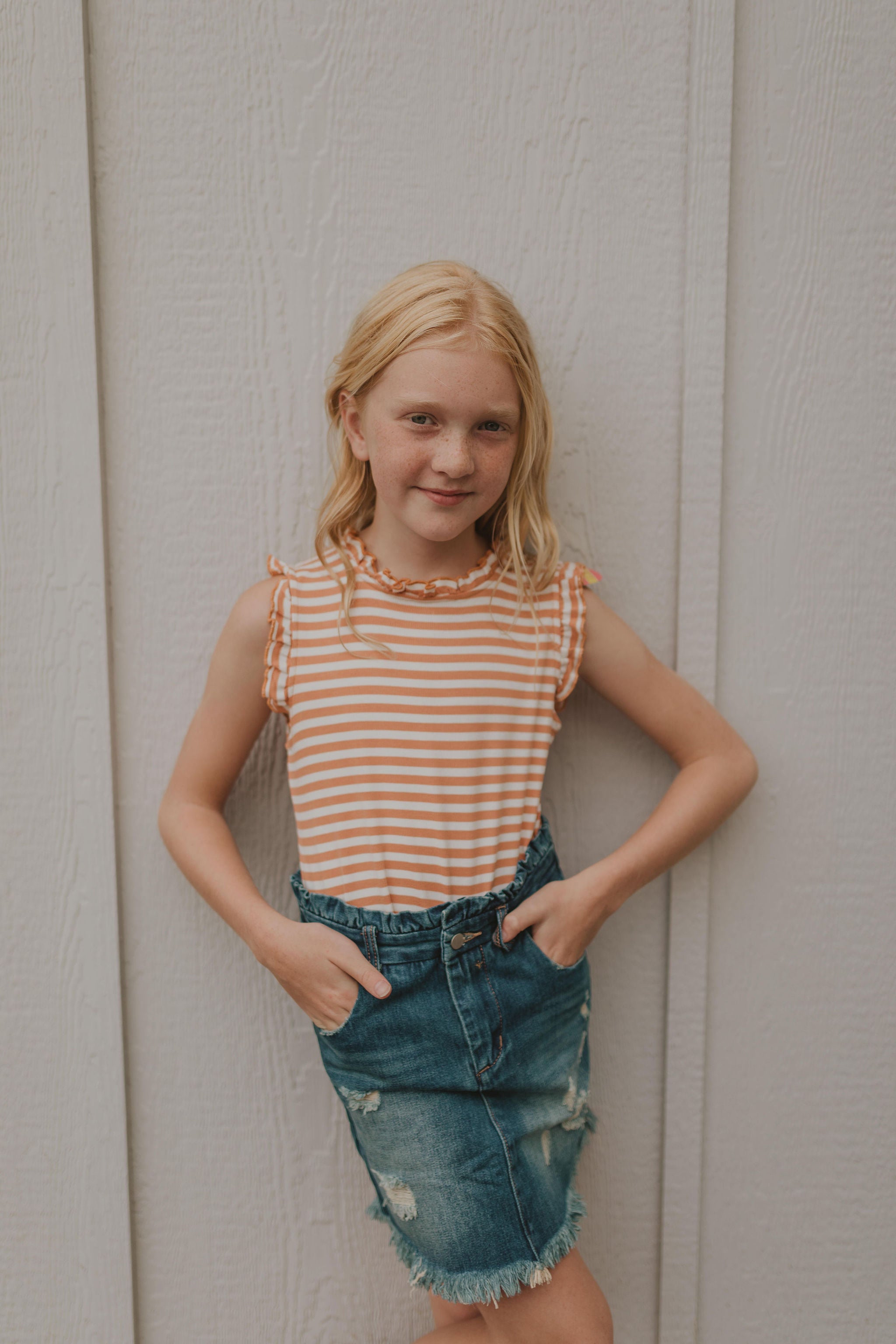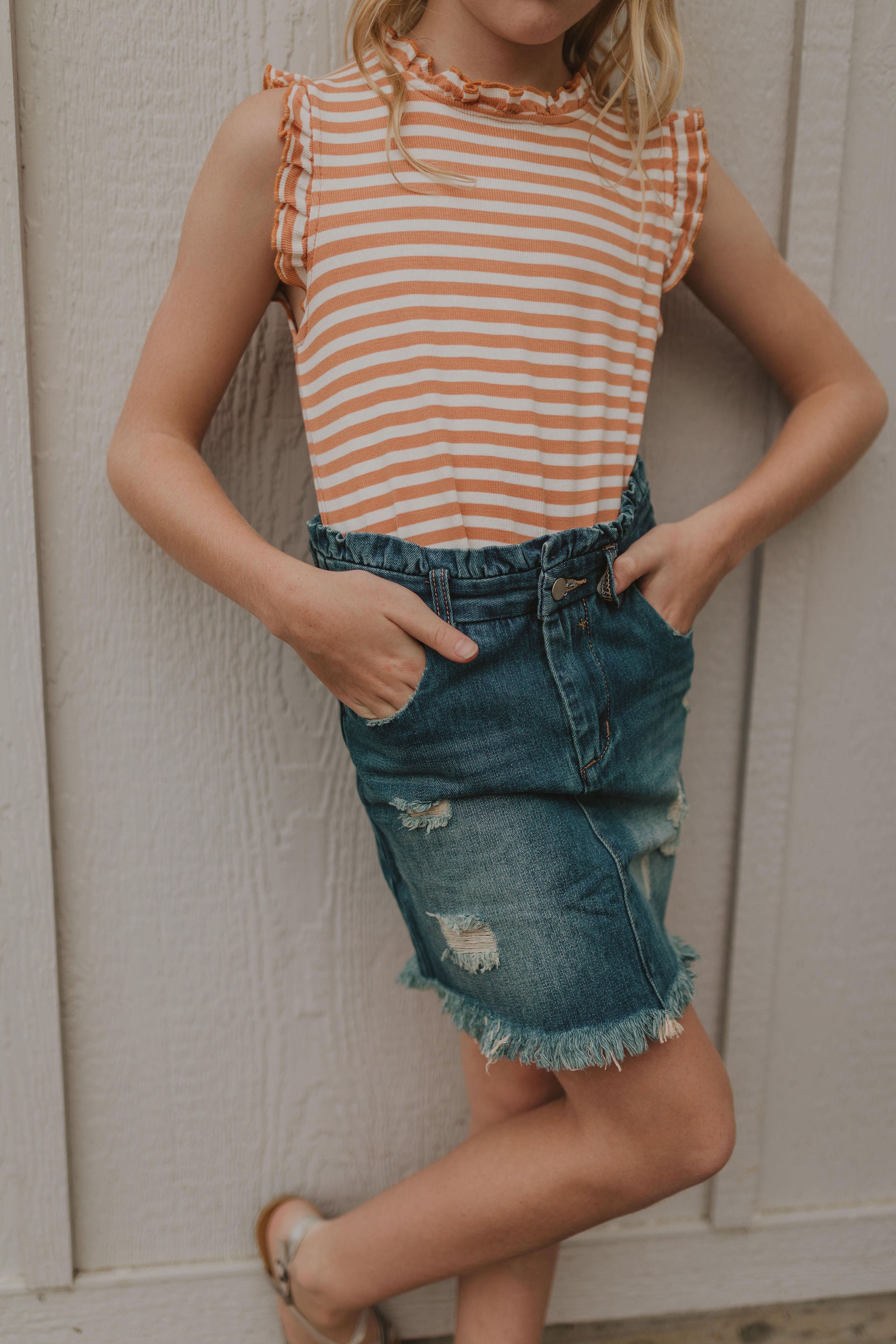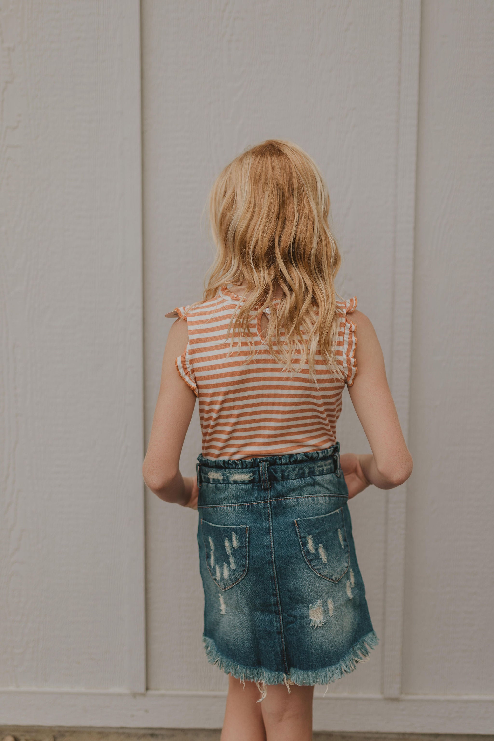 GIRLS HIGH WAISTED PAPER BAG COTTON SHORTS