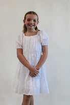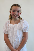 Your little girl will bloom in style with our SUTTEN Floral Applique Dress. This charming dress features a beautiful floral embroidery and textured fabric, along with playful ruffle details and puff sleeves. Perfect for any occasion, this dress adds a touch of whimsy and fun to your child's wardrobe!