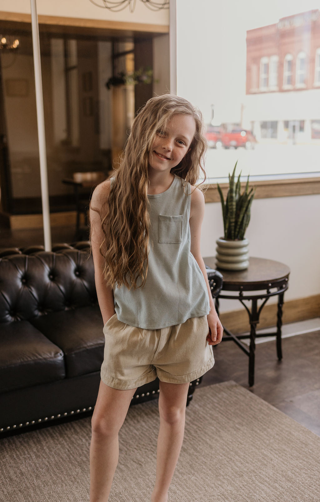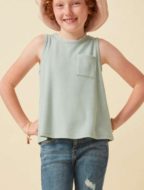 RUBY GIRLS WAFFLE KNIT POCKET TANK TOP 2 COLOR OPTIONS