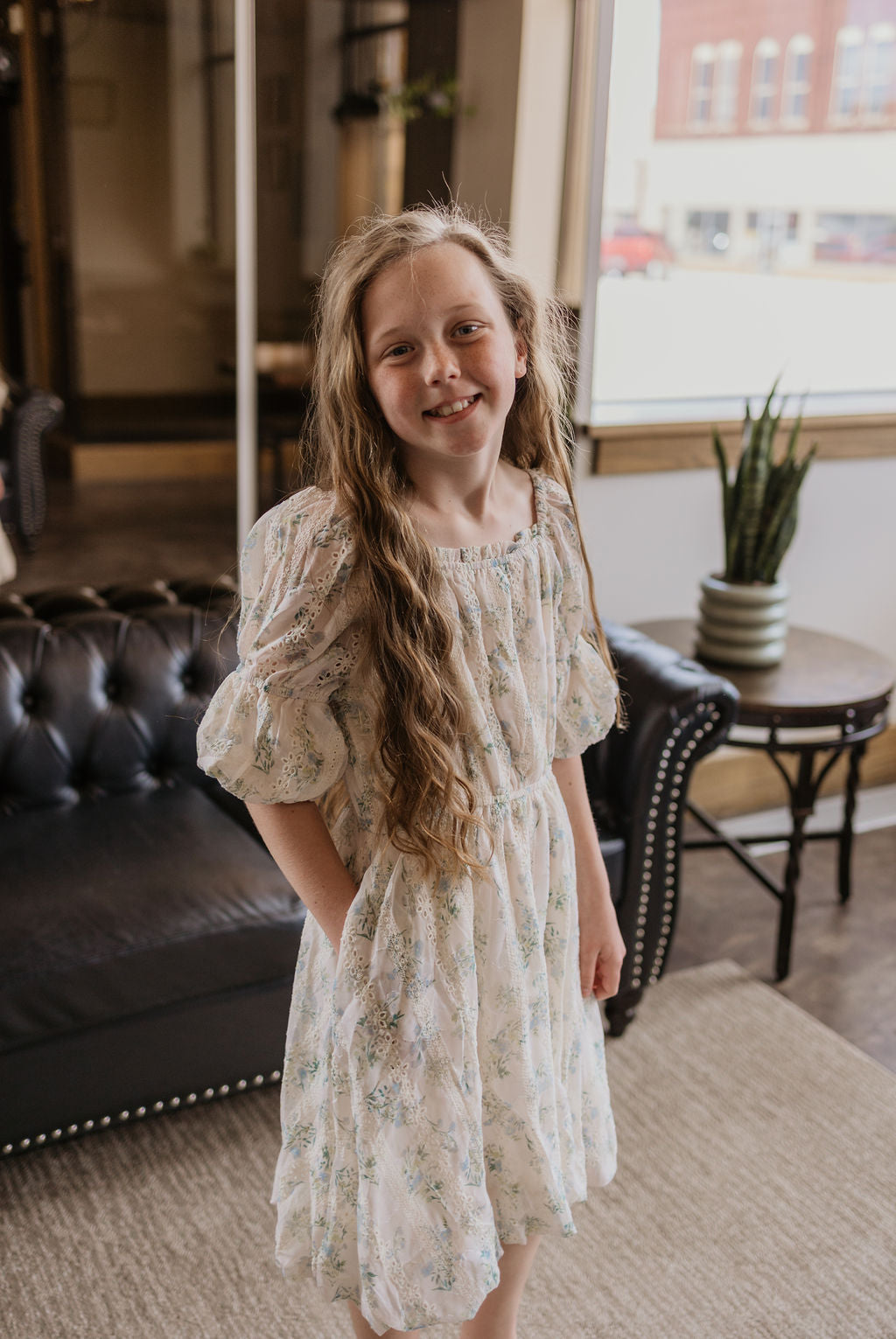 MIKAYLA GIRLS CREAM DRESS WITH SAGE FLOWERS