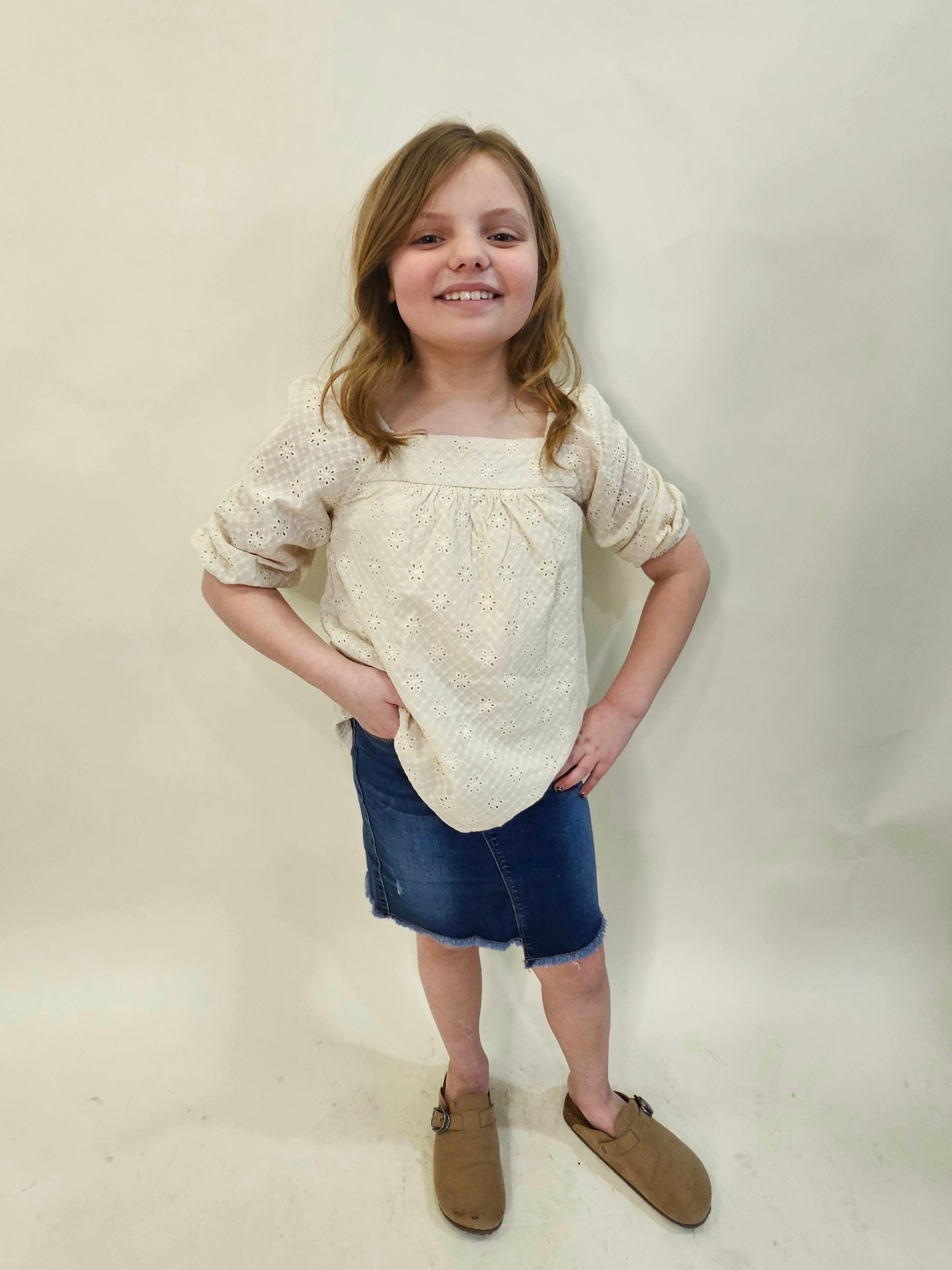 HAILEY GIRLS CROCHET SQUARE NECK IVORY BLOUSE