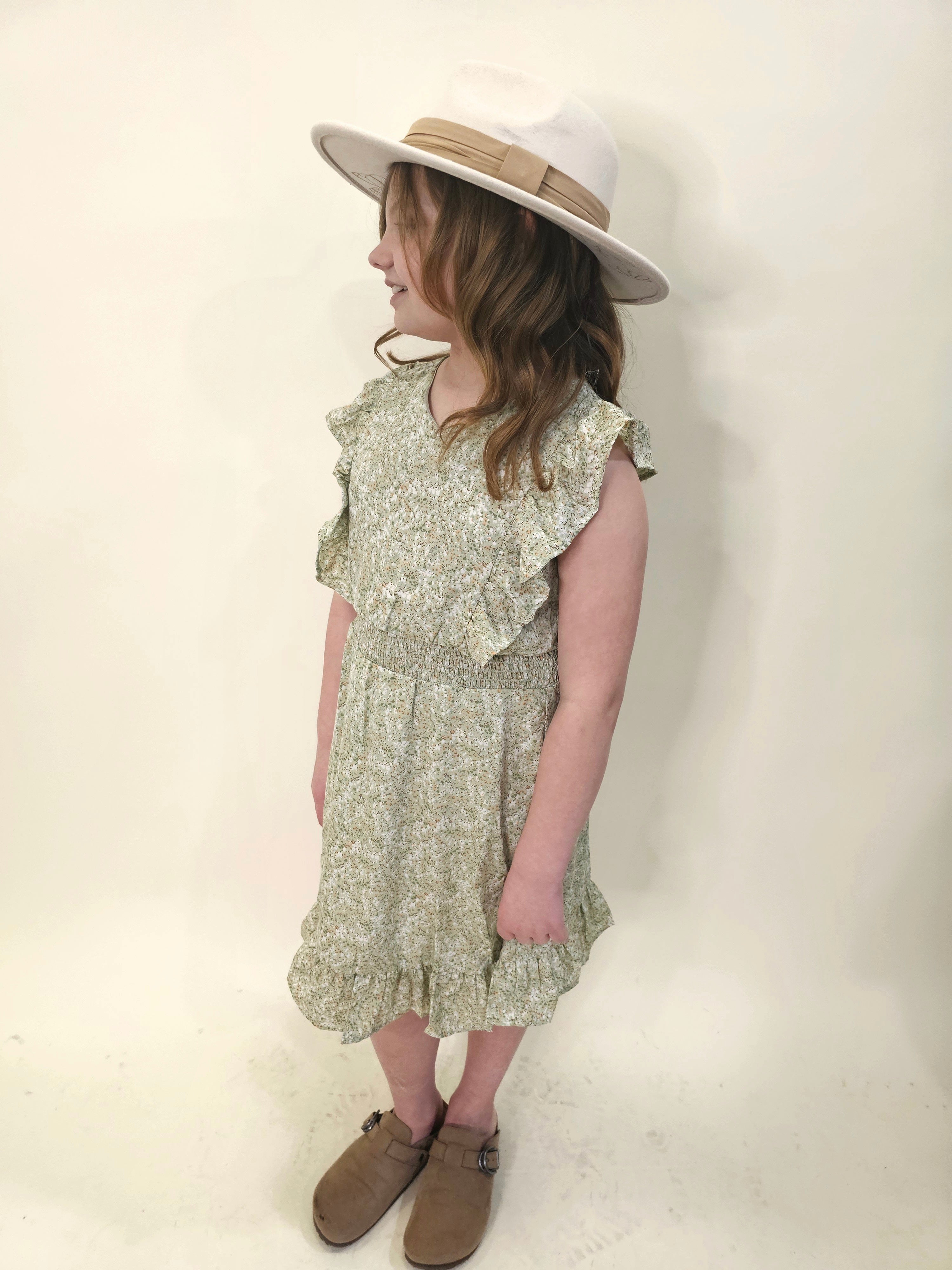 CAYLIN GIRLS FLORAL RUFFLE SLEEVE DRESS