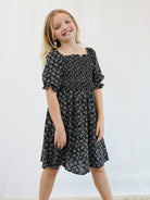 Made from a beautiful floral woven fabric, this dress features a trendy square cut neckline and charming smocked details. Perfect for any occasion, this dress will make your little one stand out in the crowd.