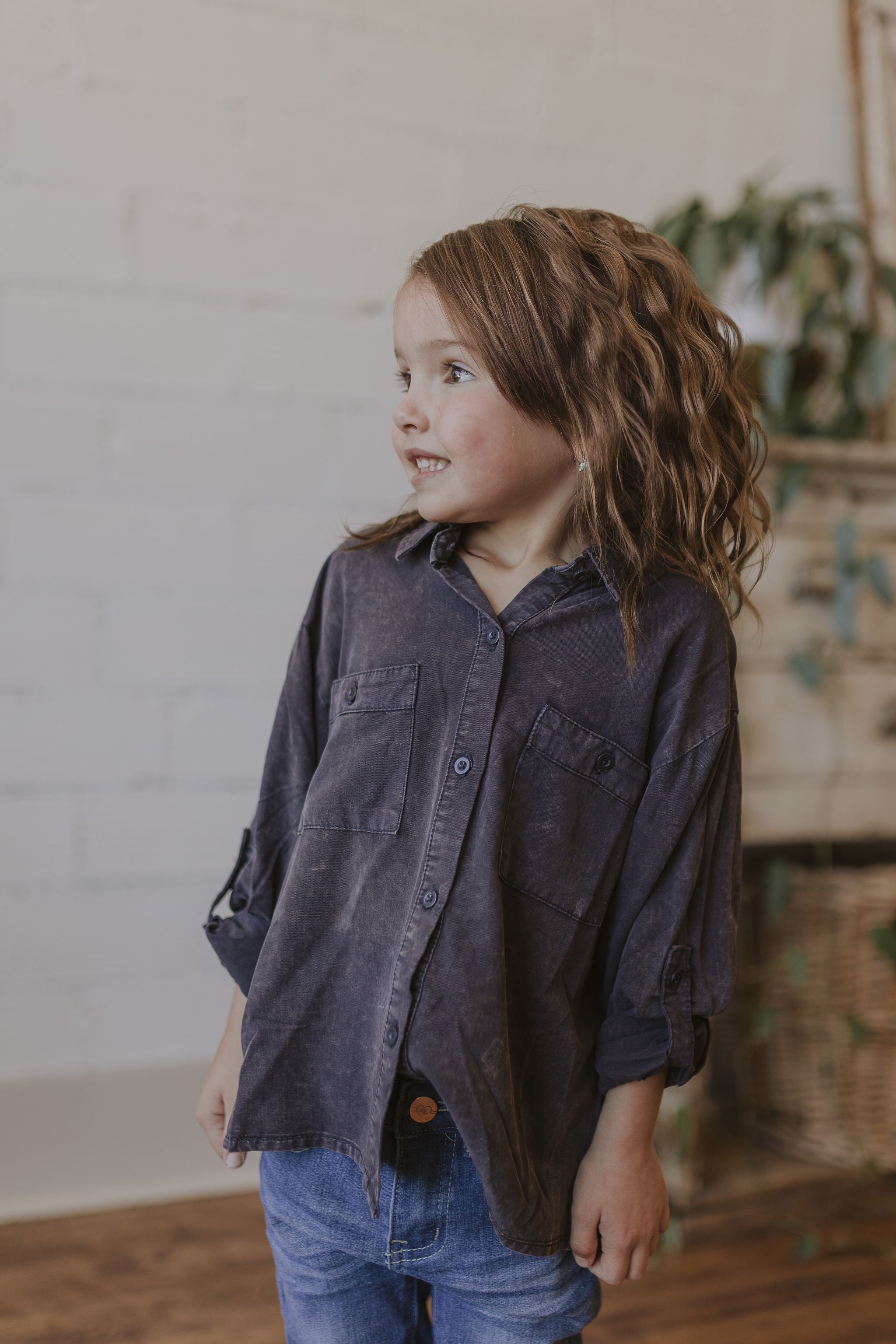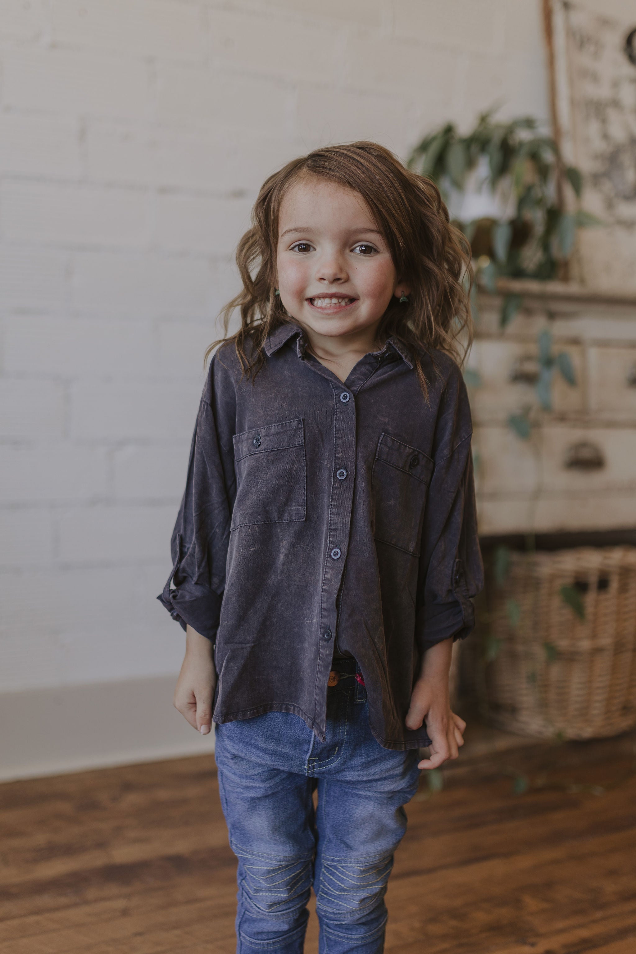 TOSHA GIRLS CHARCOAL BUTTON DOWN TOP