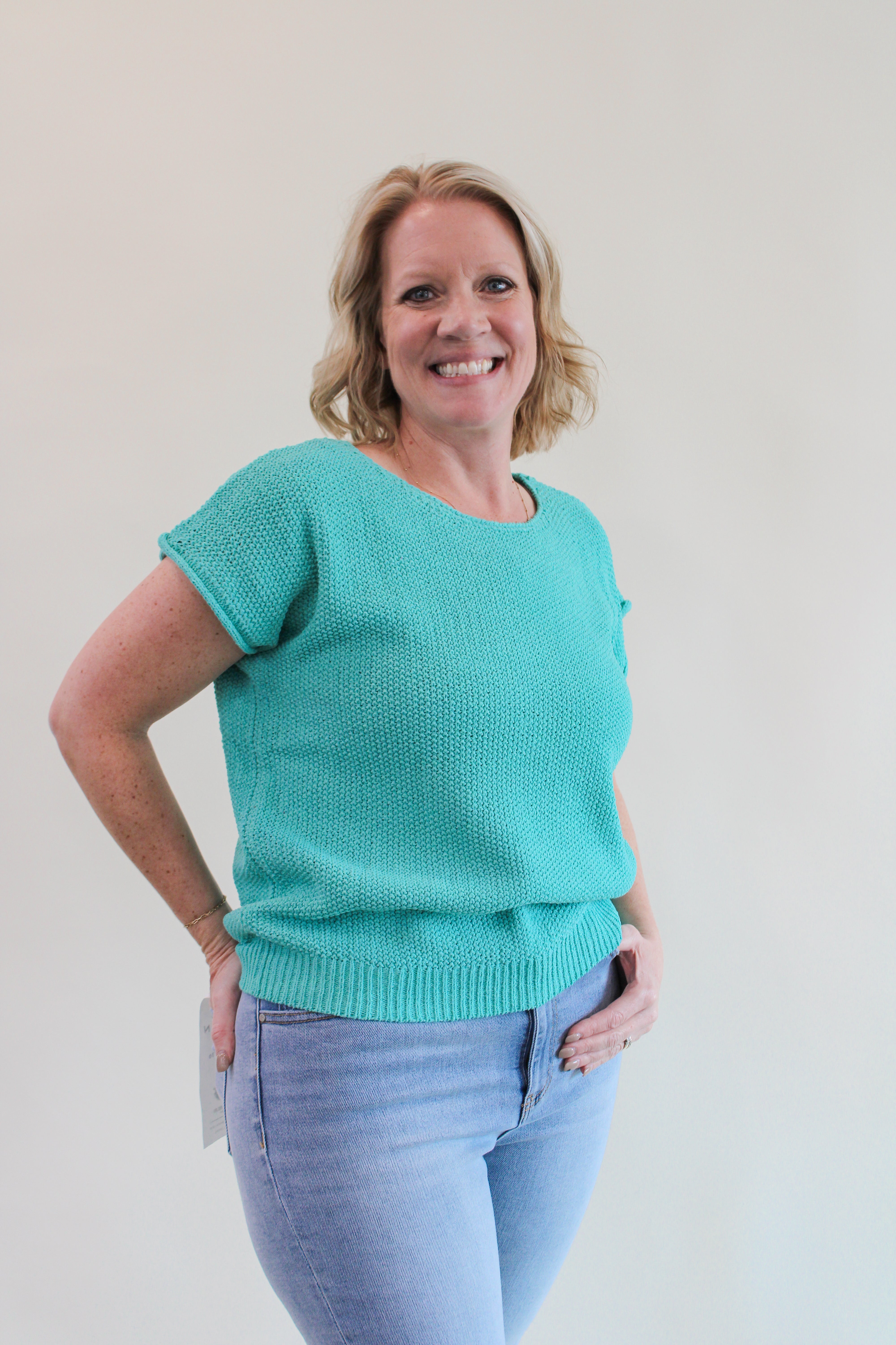 Get ready to charm in our Sharpay Short Sleeve Sweater Top! With a playful wide neck and open weave design, this pullover sweater top is a must-have for any quirky fashionista (or anyone who just wants to look cute and feel comfy).