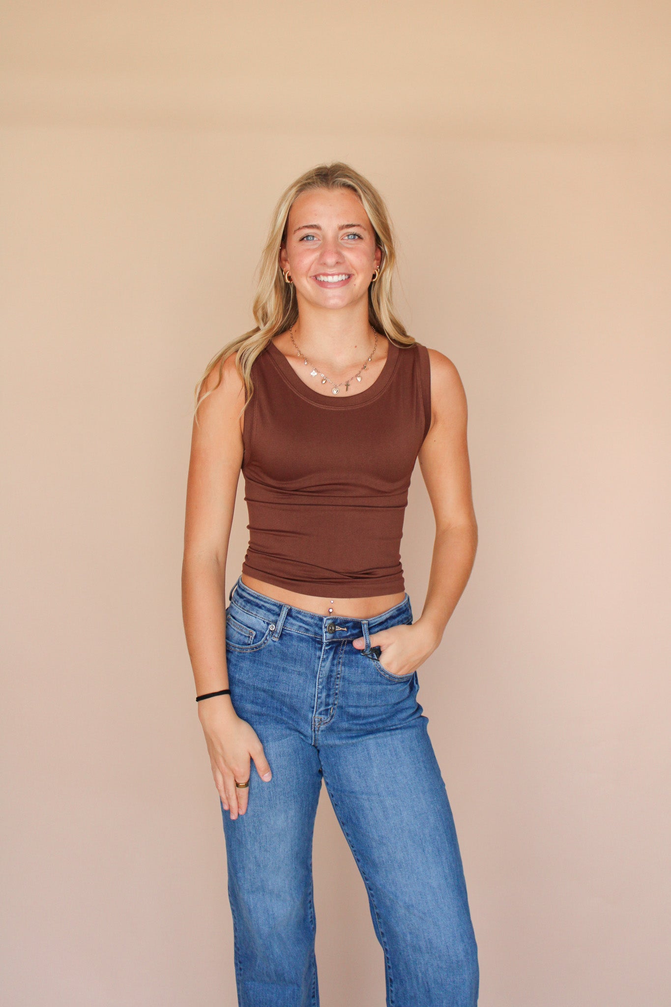 Get ready to turn heads with the Maddyn Cropped Seamless Camisole! This playful tank features a smooth, seamless finish and a comfy round neck. Measuring approximately 20" in length and 25" around the bust (S/M), it’s the perfect fit for effortless style and cool vibes all day long.