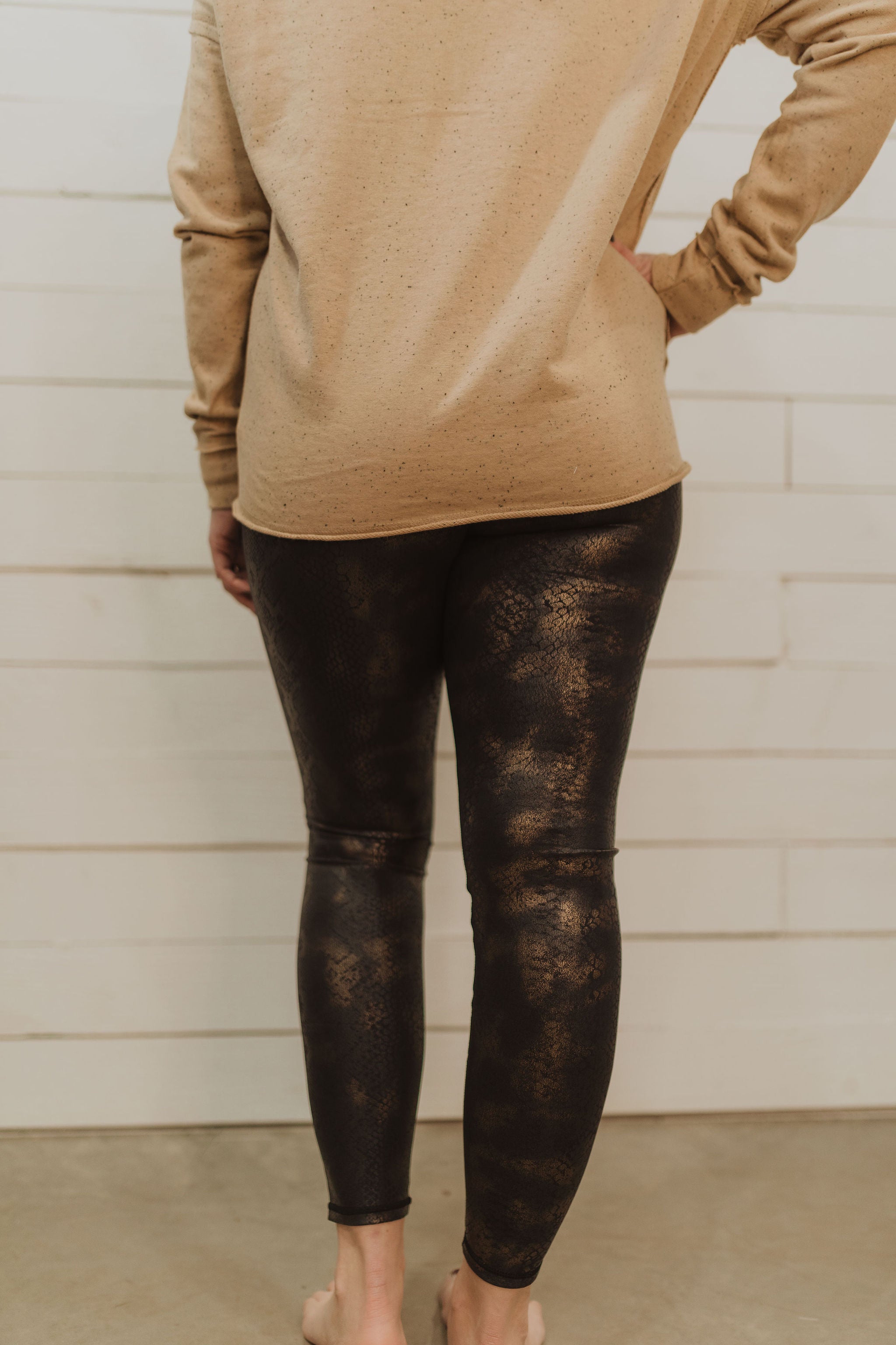 Black Gold Snake Foil Print High waist Leggings