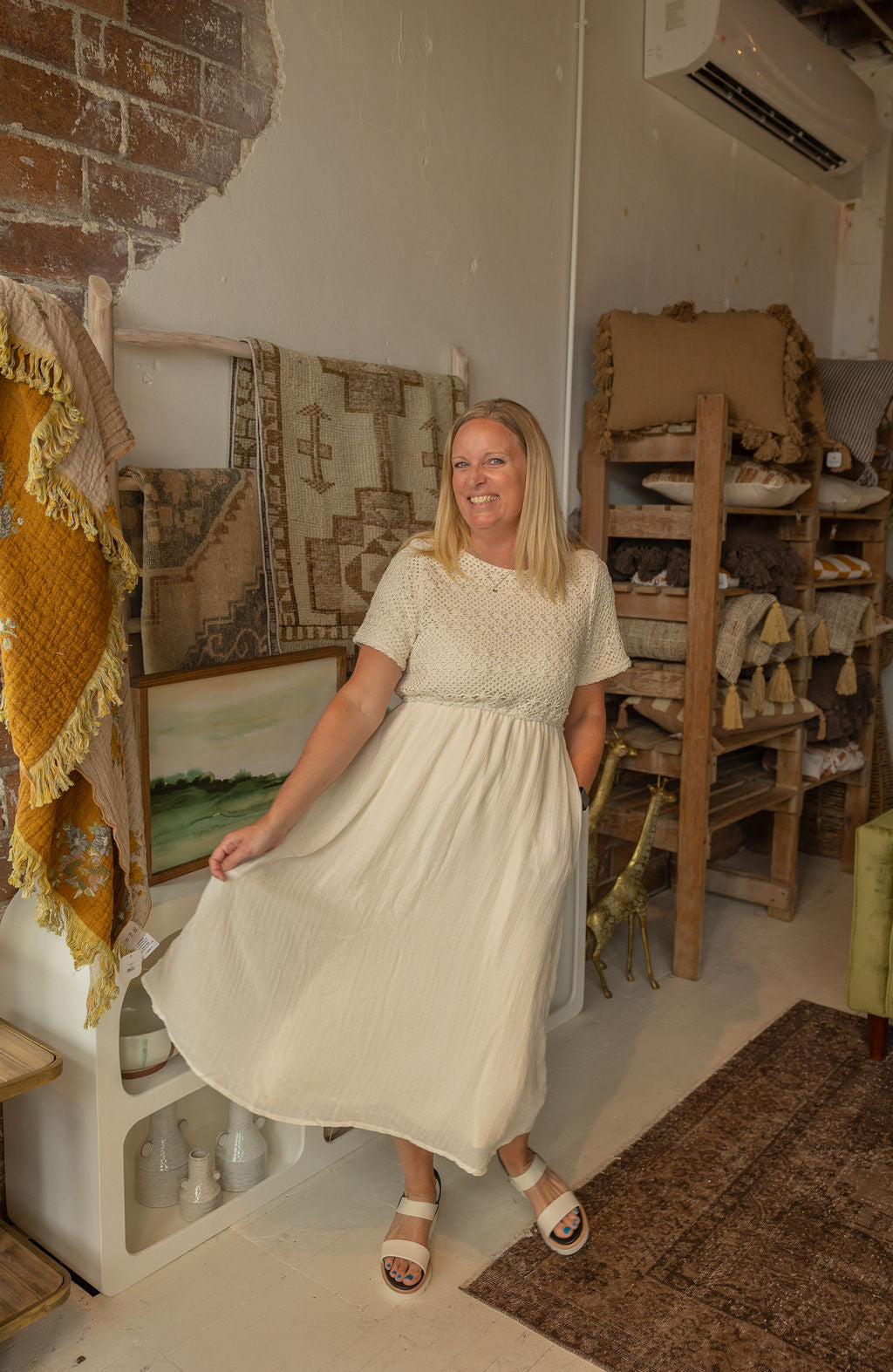 ABBIE CREAM MULTI TEXTURED MAXI DRESS