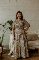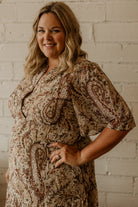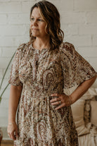 Step into effortless style with the Frankee Reg/Curvy Tiered Maxi Dress. Featuring a vibrant paisley print, this woven dress flows beautifully with a flattering tiered design. An elastic waistband ensures a comfy, perfectly fitted silhouette, while handy pockets add a touch of practicality. Perfect for twirling through your day with playful elegance!