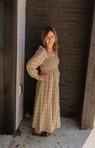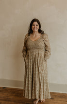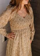 Made from a soft and breathable cotton floral fabric, this dress features a smocked bodice and voluminous sleeve ends for a flattering and comfortable fit. Plus, it has handy side pockets for all your essentials. Perfect for any occasion!