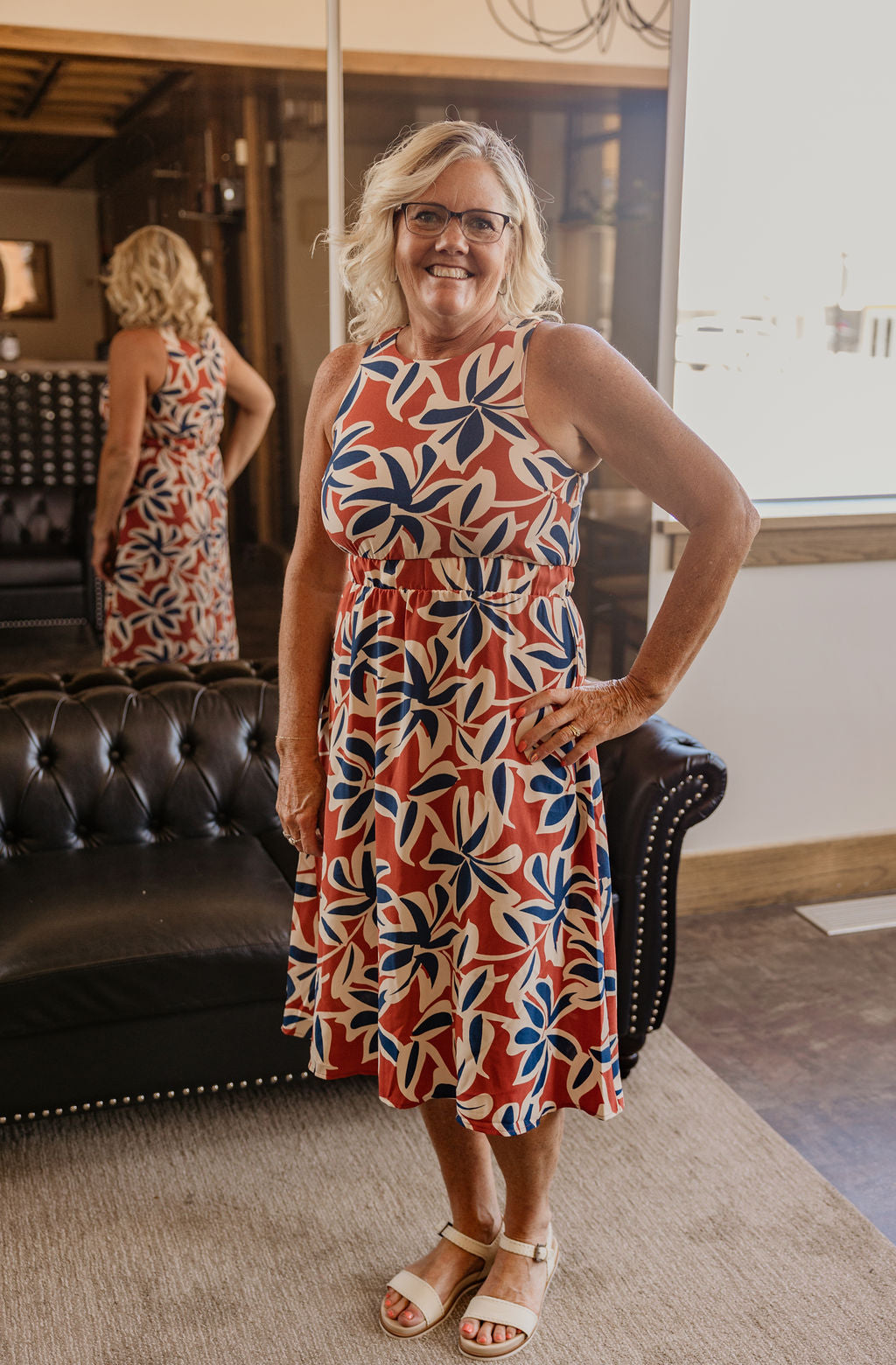 HILDA TERRACOTTA FLORAL MIDI DRESS