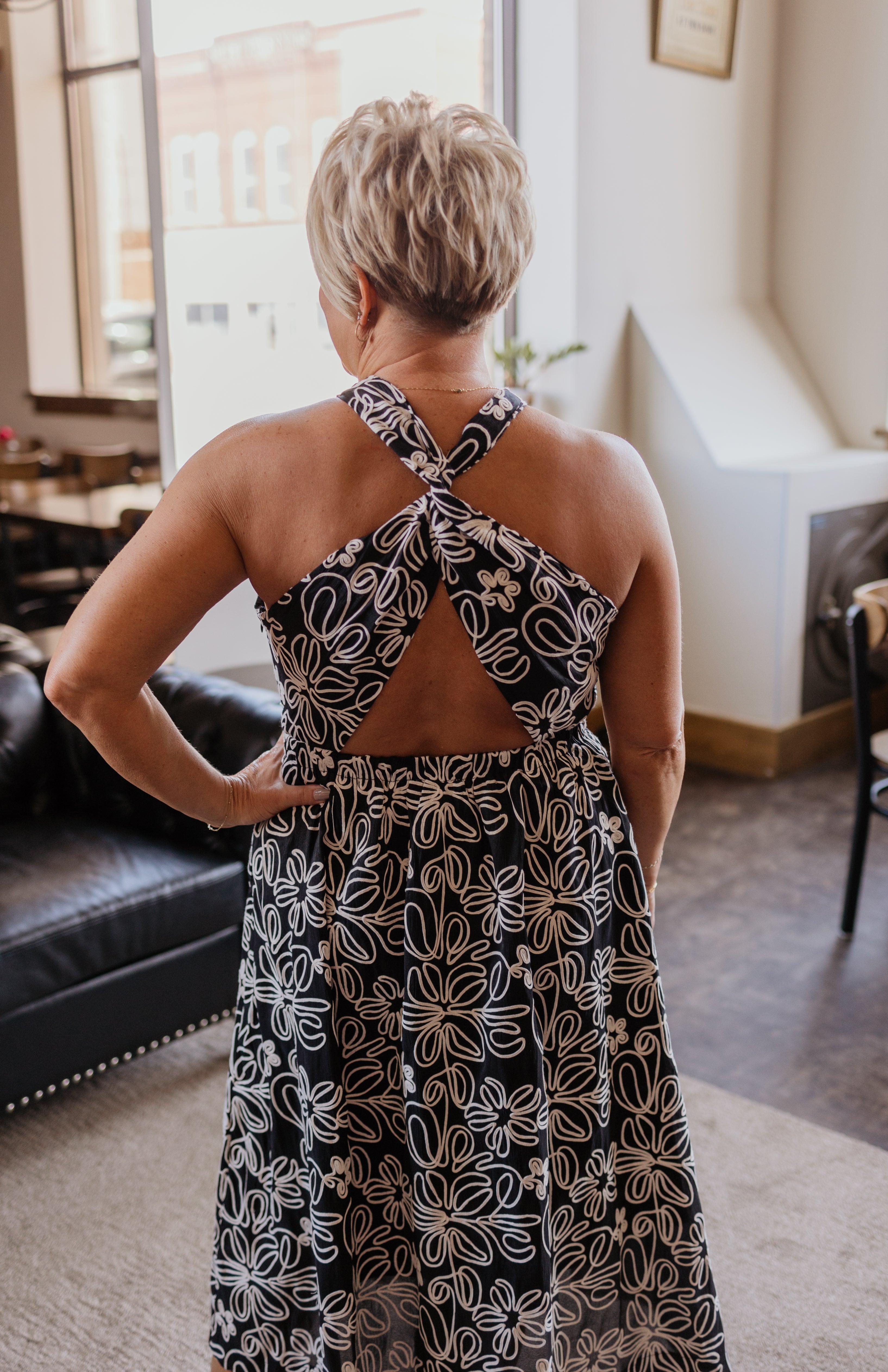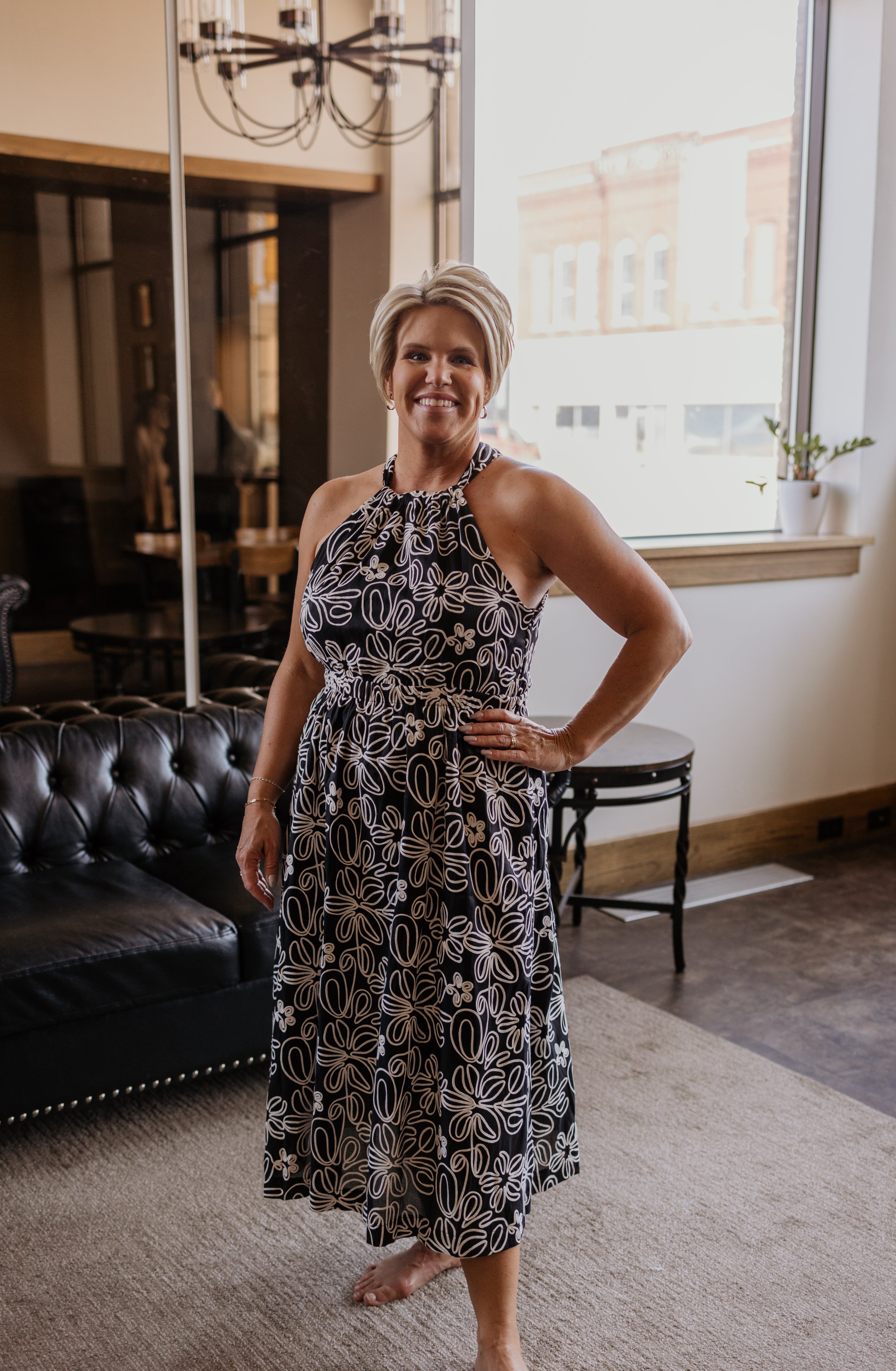GRACIA ABSTRACT HALTER TIERED MIDI DRESS