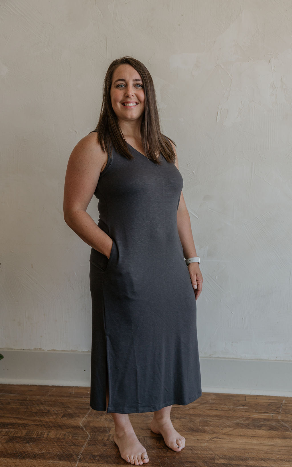 JUSTINE CHARCOAL VNECK CASUAL DRESS