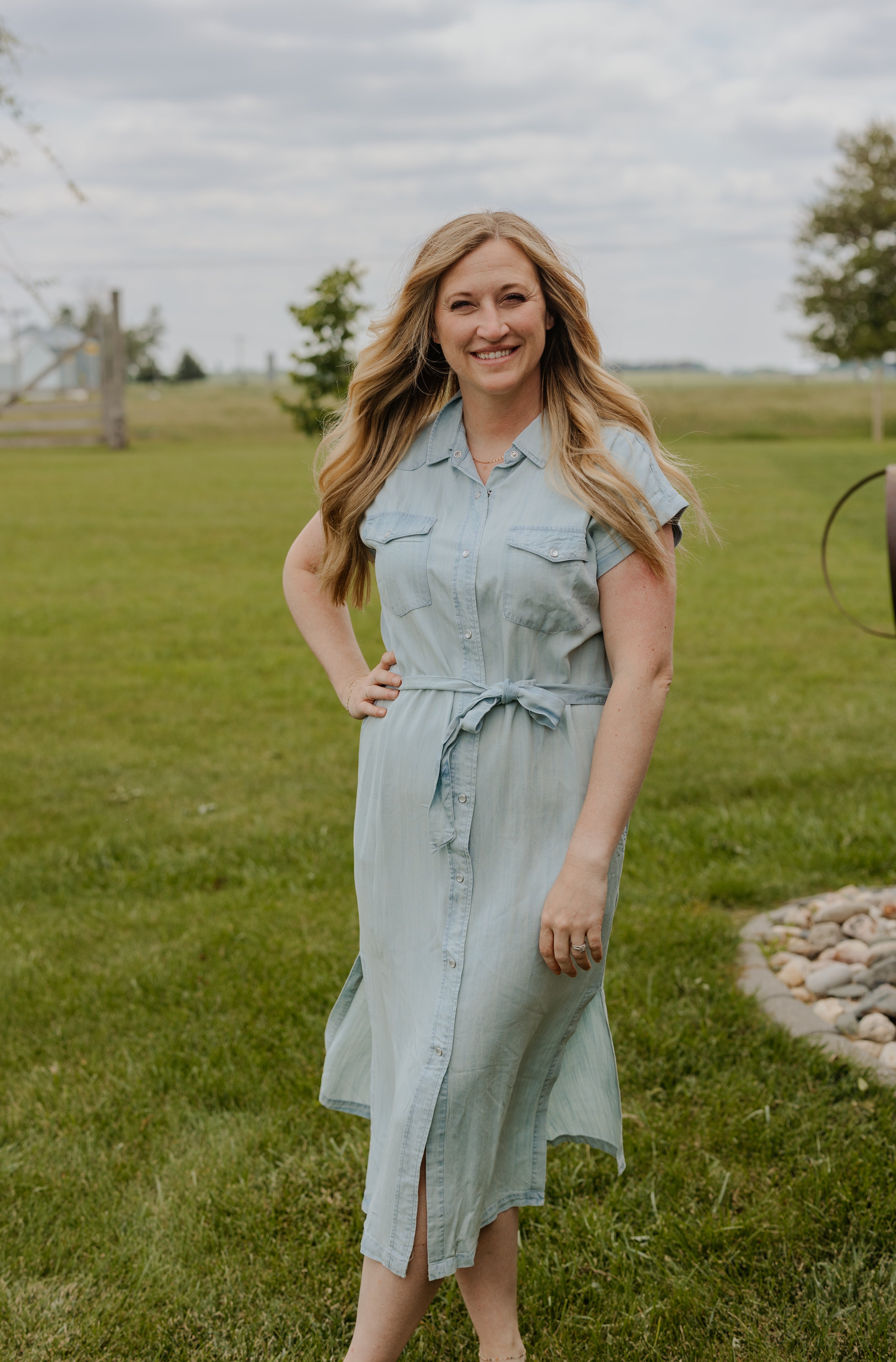 TANAE BLUE FRENCH TERRY MIDI DRESS
