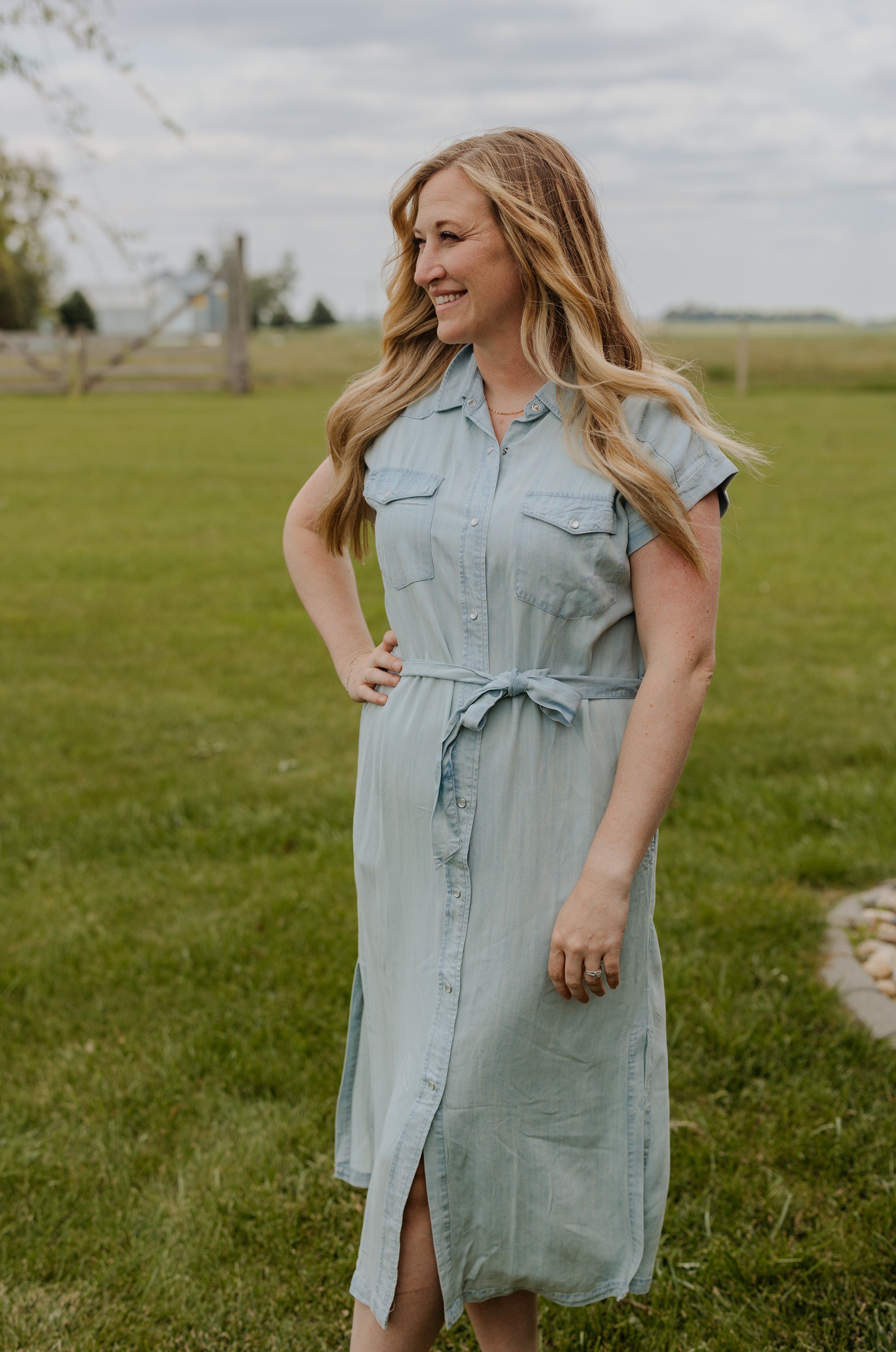 BELLA PRINTED FRONT TIE MIDI DRESS