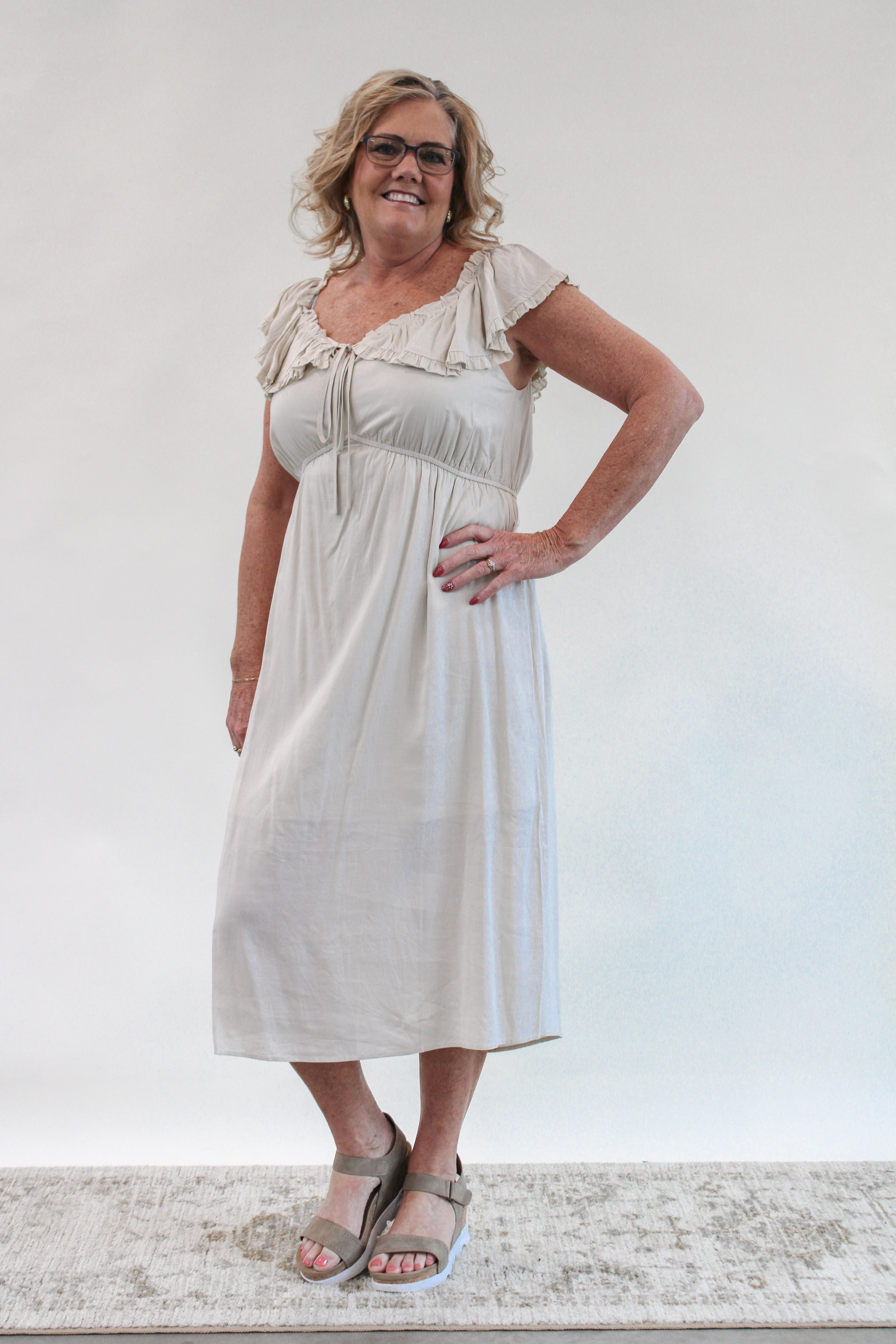 HOLDEN LINEN RUFFLE MIDI DRESS