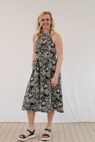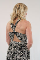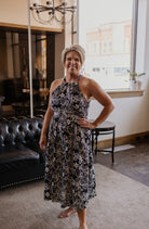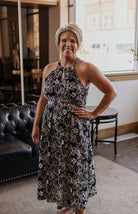 Add a statement to your wardrobe with CALLIOPE, the floral halter neck midi dress perfect for any occasion. The halter neckline enhances your shoulders while the bold print provides an elegant silhouette. With a midi length for sophistication and a flowy skirt for comfort, this dress is sure to stand out in any setting.