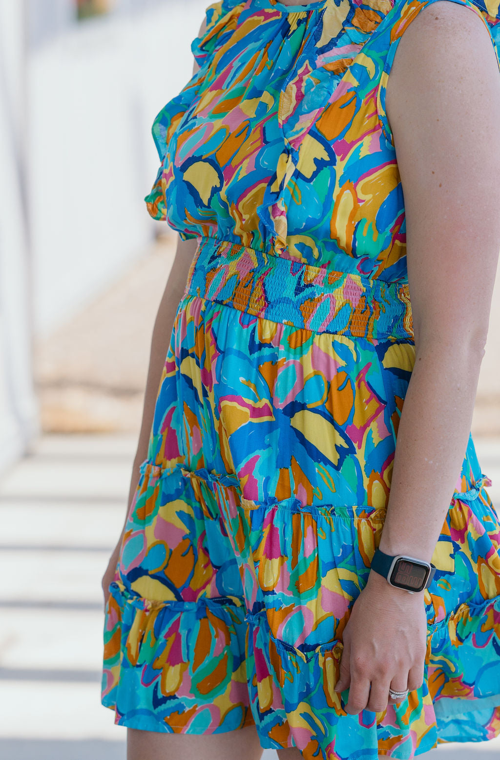 GRETA ABSTRACT PRINT SHORT RUFFLE SLEEVE SHORT DRESS