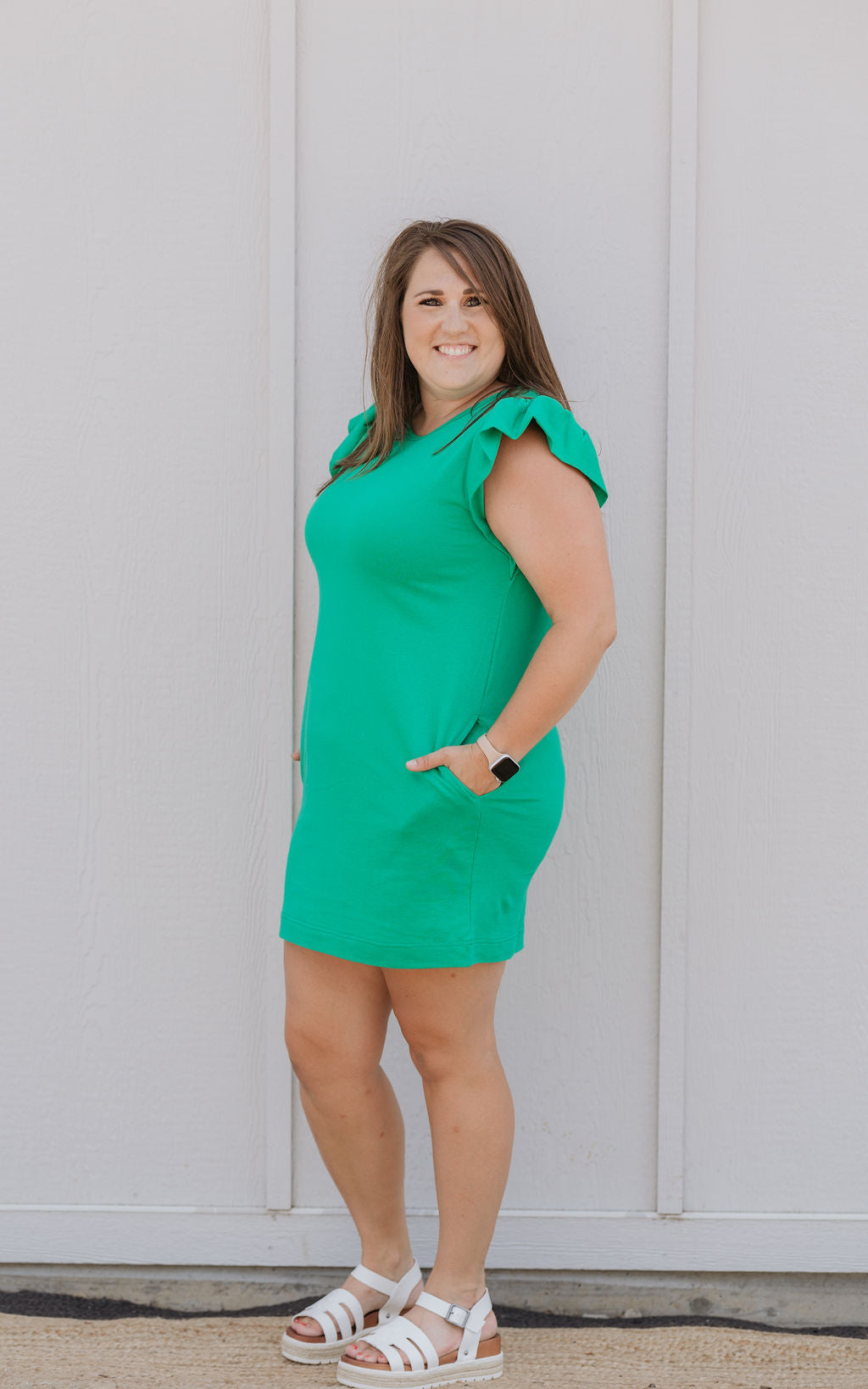 ELIZABETH RUFFLE SLEEVE SHORT DRESS 2 COLOR OPTIONS