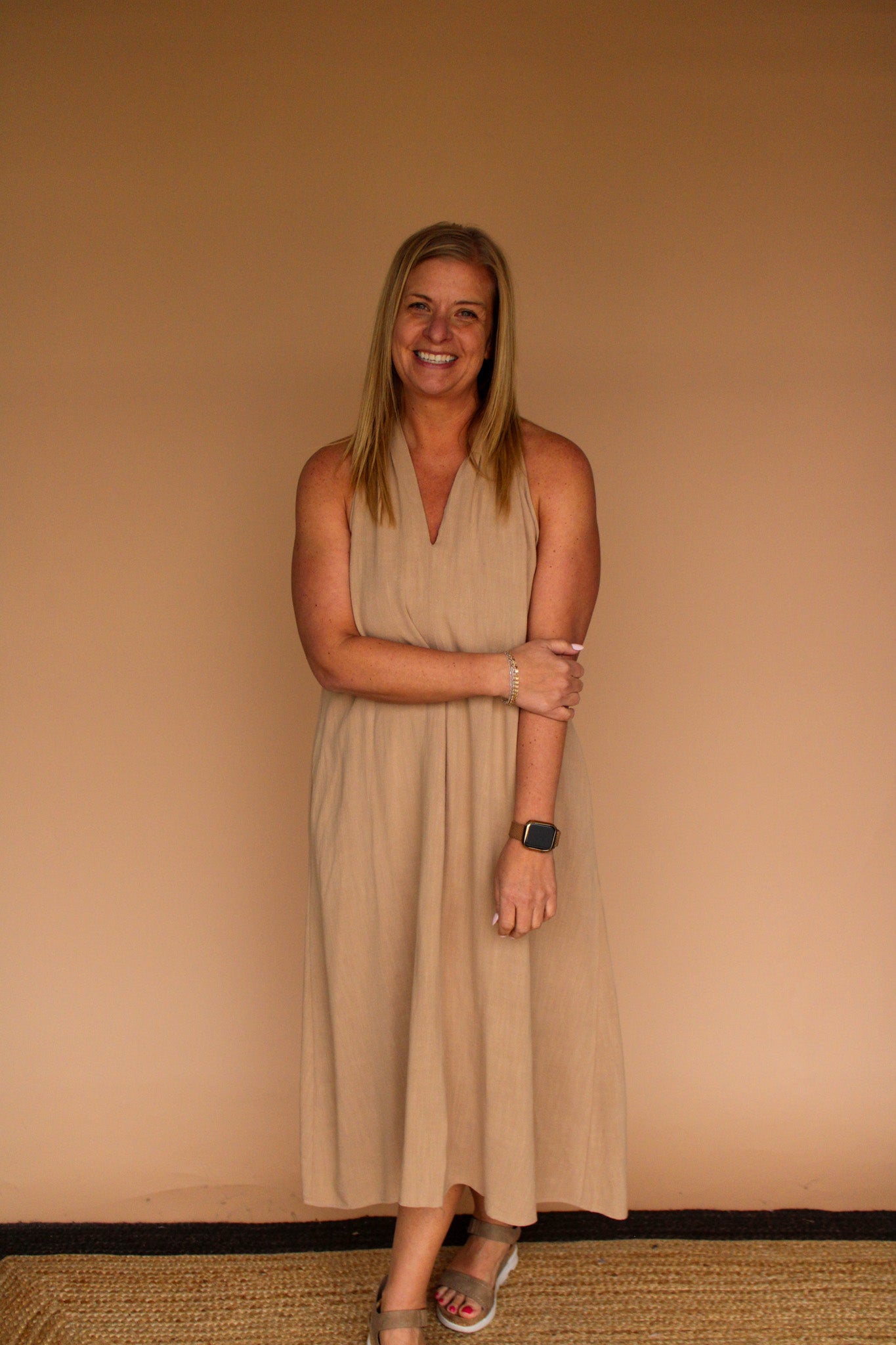 MELINDA SLEEVELESS HALTER NECK MAXI DRESS