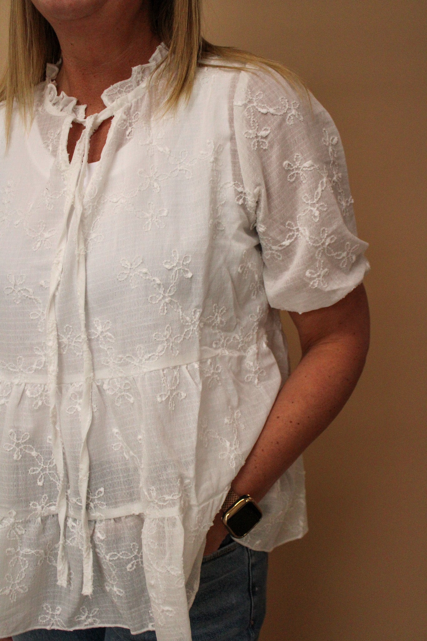 MORGAN EMBROIDERED TIERED PEPLUM TOP