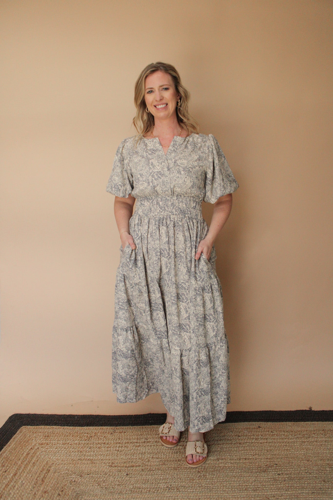Elevate your wardrobe with the Anastasia Floral Printed Maxi Dress, a stunning piece designed for effortless elegance. This woven maxi features a romantic tiered silhouette and eye-catching floral print that transitions beautifully from day to night. The half balloon sleeves add a touch of feminine charm, while the elastic waistband ensures a comfortable, flattering fit. Practical pockets keep your essentials close. Perfect for any occasion, this dress combines style and functionality in one versatile piece.