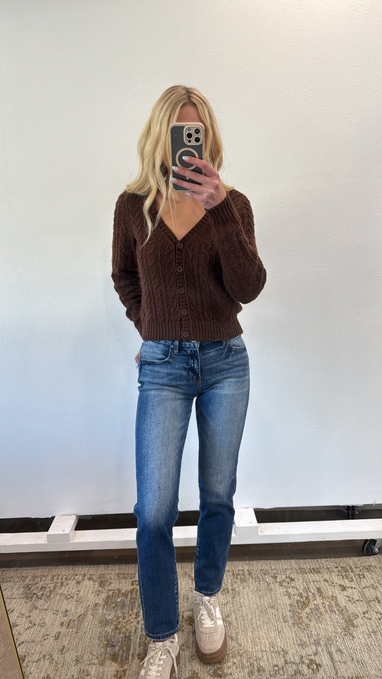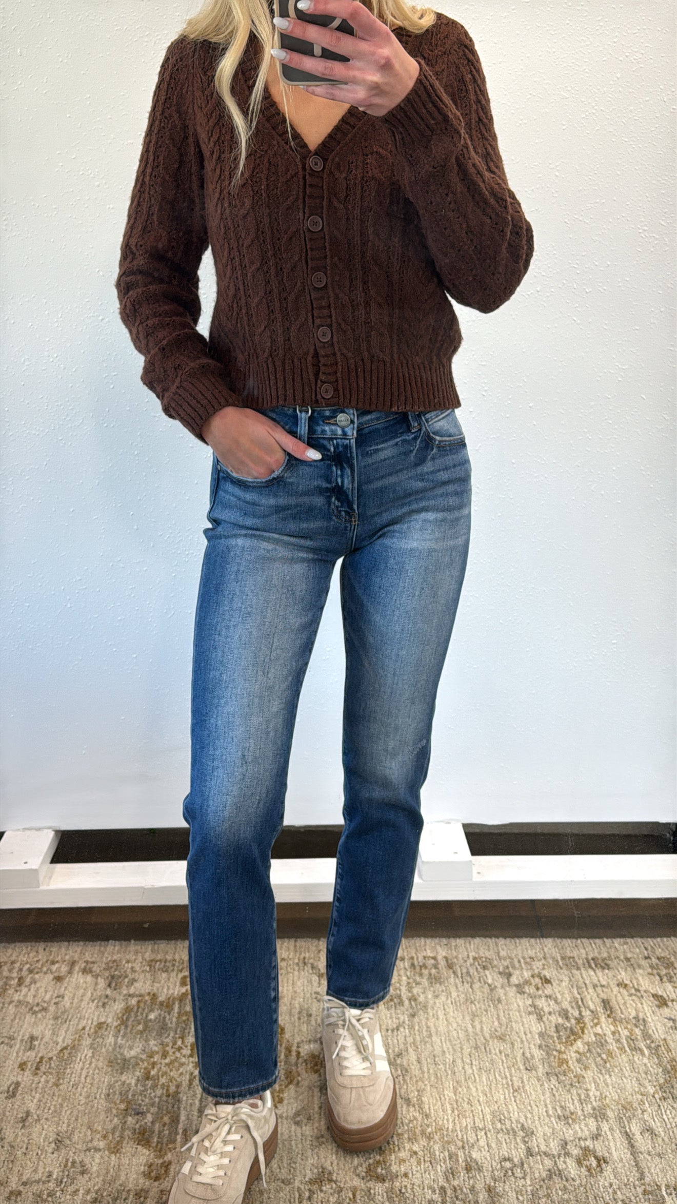 Step into style with the Bentley Mid Rise Ankle Tapered Jean! Featuring a flattering mid rise and a sleek ankle tapered fit, these dark wash jeans add a touch of edge to any outfit. Perfect for day-to-night adventures, they hug your curves just right while keeping things effortlessly cool. Whether paired with sneakers or heels, these jeans bring playful charm to your wardrobe.