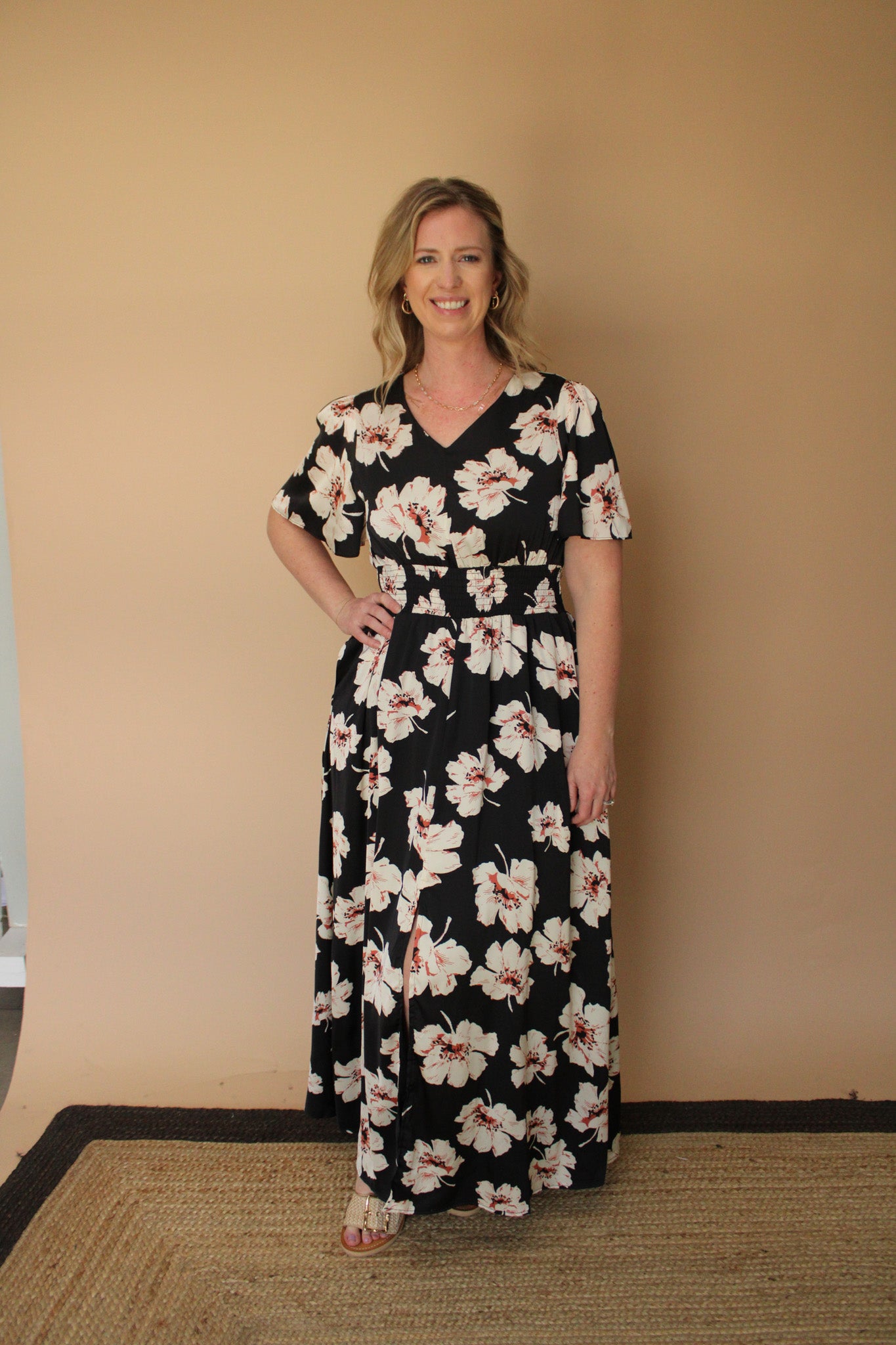 BLOSSOM FLORAL SMOCKED WAIST MIDI DRESS