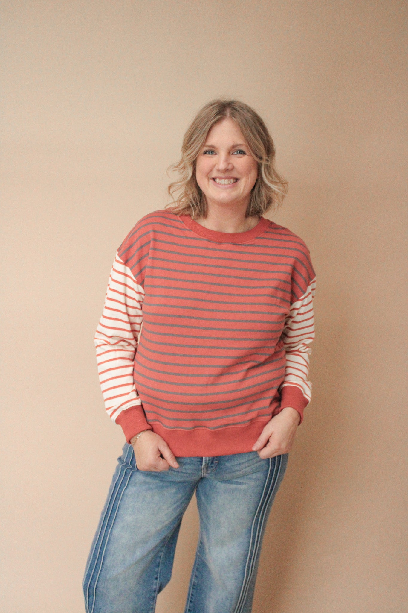 Elevate your casual game with the Challys Crewneck Sweatshirt Top—a playful take on everyday comfort. This striped colorblock design in soft French terry fabric brings visual interest to your wardrobe while keeping you cozy. The classic crewneck silhouette pairs effortlessly with everything from jeans to joggers, making it your new go-to layer for laid-back vibes and weekend adventures.