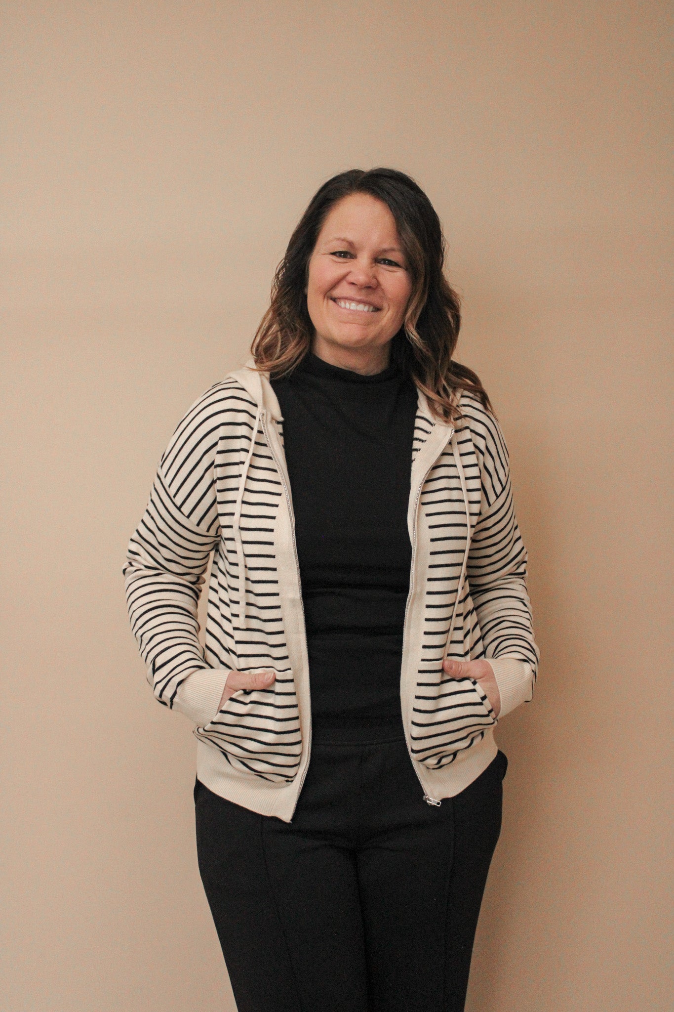 CLARA STRIPED HOODED ZIP-UP CARDIGAN
